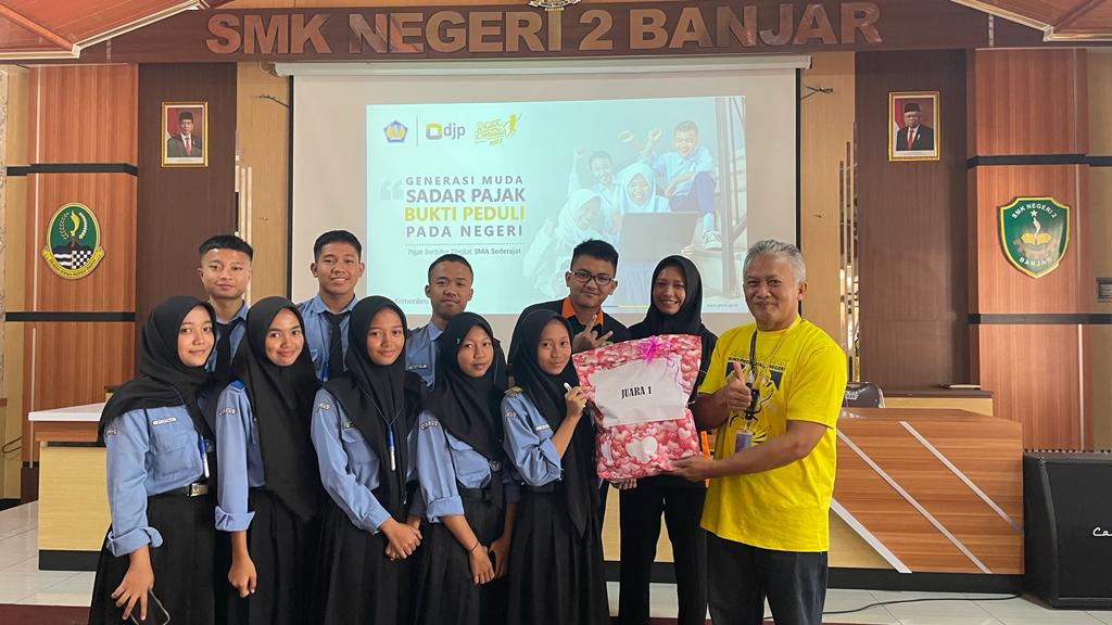 Puluhan siswa SMK Negeri 2 Kota Banjar mengikuti kegiatan Pajak Bertutur yang diadakan oleh Kantor Pelayanan Penyuluhan dan Konsultasi Perpajakan (KP2KP) Banjar di Aula SMKN 2 Banjar, jalan Banjar Ciamis, Cipadung, Kota Banjar (Kamis, (27/7).