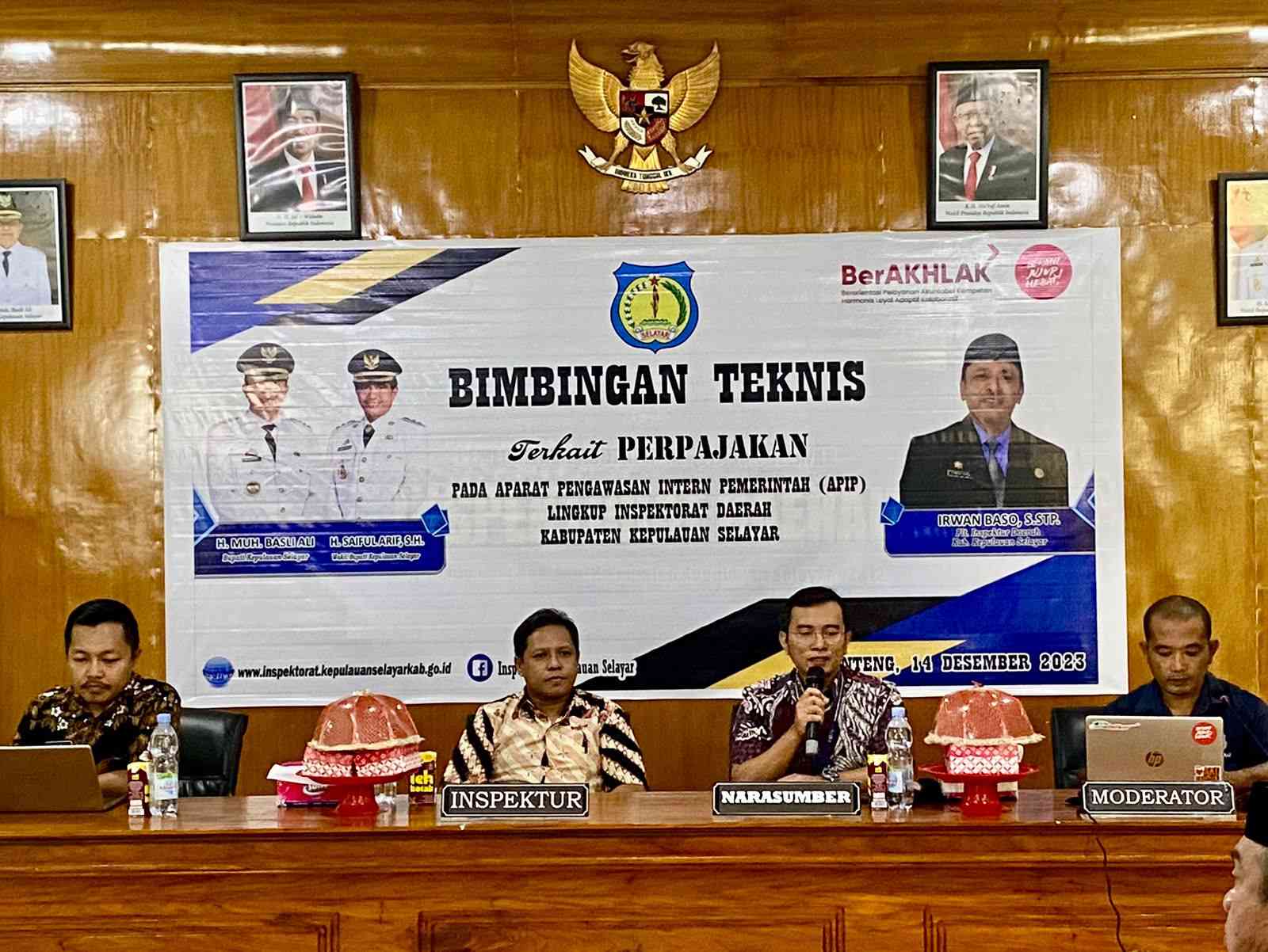 Kegaiatan dibuka dengan sambutan oleh Inspektur Daerah Kabupaten Kepulauan Selayar Iwan Baso. Dalam sambutannya Iwan Baso menyampaikan kegiatan ini bertujuan untuk meningkatkan pengetahuan APIP tentang pajak pusat yang dinamis. APIP memiliki tugas untuk mengawasi dan mengawal administrasi di instansi pemerintah termasuk dalam aspek perpajakan.