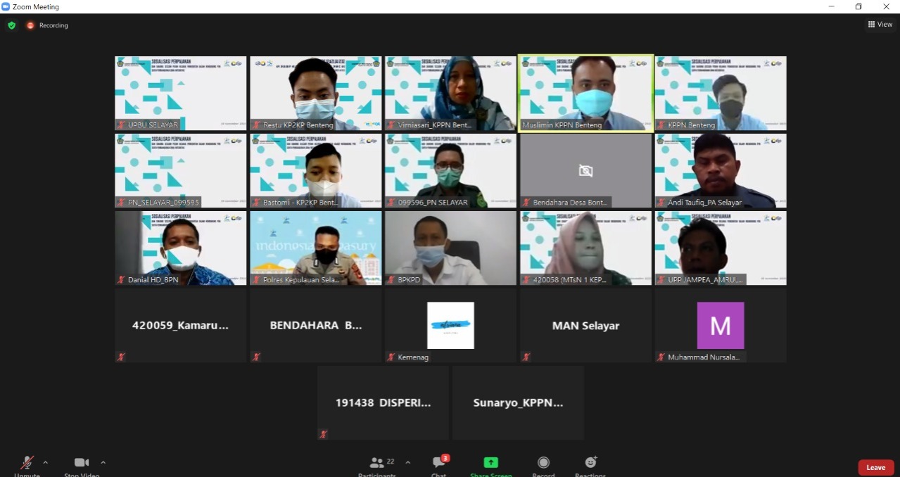 Kantor Pelayanan, Penyuluhan, dan Konsultasi Perpajakan (KP2KP) Benteng bersama Kantor Pelayanan Perbendaharaan Negara (KPPN) Benteng mengadakan penyuluhan secara daring kepada Bendahara Instansi Vertikal (Rabu, 17/11). Narasumber dari KP2KP Benteng mengisi kegiatan ini via aplikasi Zoom Meeting langsung dari ruang kelas pajak KP2KP Benteng, Kabupaten Kepulauan Selayar.