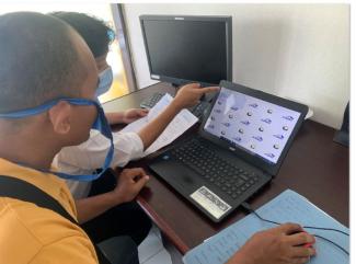 Pegawai Kantor Pelayanan, Penyuluhan, dan Konsultasi Perpajakan (KP2KP) Benteng memberikan edukasi cara pembuatan faktur pajak kepada Pengusaha Kena Pajak (PKP) yang datang ke ruang helpdesk KP2KP Benteng, Kabupaten Kepulauan Selayar (Senin, 21/3).
