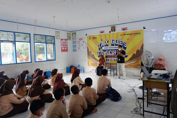 Kantor Pelayanan, Penyuluhan, dan Konsultasi Perpajakan (KP2KP) Bontosunggu menyelenggarakan kegiatan Tax Goes To School (TGTS) Tahun 2023 di UPT SMP Negeri 3 Binamu, Jeneponto (Sabtu, 4/2). Kegiatan dilaksanakan secara langsung di Ruang OSIS SMP Negeri 3 Binamu dan diikuti 35 siswa dari kelas VII, VIII, dan IX. Tax goes to school mengusung tema “Generasi Sadar Pajak, Muda Berkreasi Membangun Negeri”.