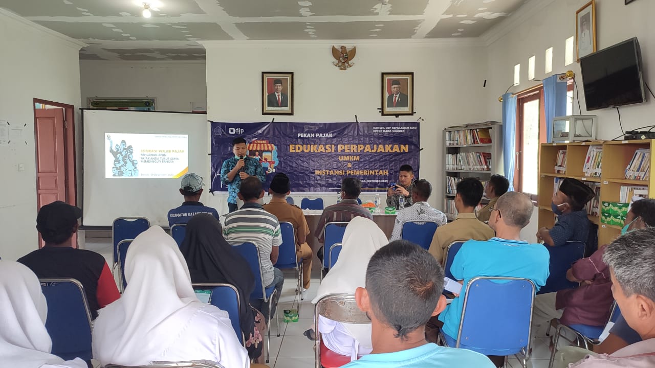 Kantor Pelayanan, Penyuluhan, dan Konsultasi Perpajakan (KP2KP) Dabo Singkep menggelar kegiatan edukasi perpajakan dengan tema “Nelayan Bijak, Bayar Pajak” di Desa Benan, Kecamatan Katang Bidara, Kabupaten Lingga, Kepulauan Riau (Selasa, 14/12). Desa Benan adalah salah satu desa terjauh dari pusat Kabupaten Lingga. Kegiatan ini bertempat di Aula Desa Benan dan dihadiri oleh Pegawai Desa, Nelayan, dan Wajib Pajak pelaku Usaha Mikro Kecil dan Menengah (UMKM).
