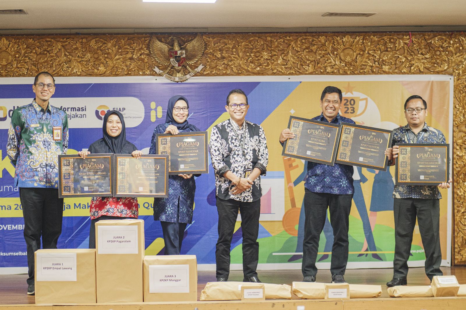 Kantor Pelayanan Penyuluhan dan Konsultasi Perpajakan (KP2KP) Empat Lawang kembali menerima penghargaan untuk kedua kalinya dari Kepala Kanwil DJP Sumsel Babel sebagai KP2KP terbaik pertama tahun 2023. Sebelumnya KP2KP Empat Lawang juga mendapat penghargaan sebagai kantor pelayanan terbaik tahun 2022.