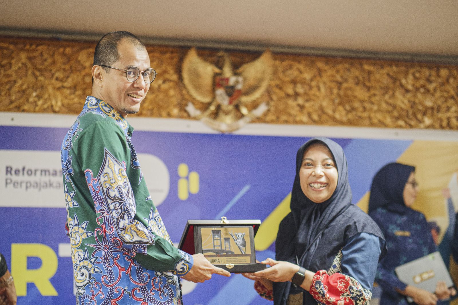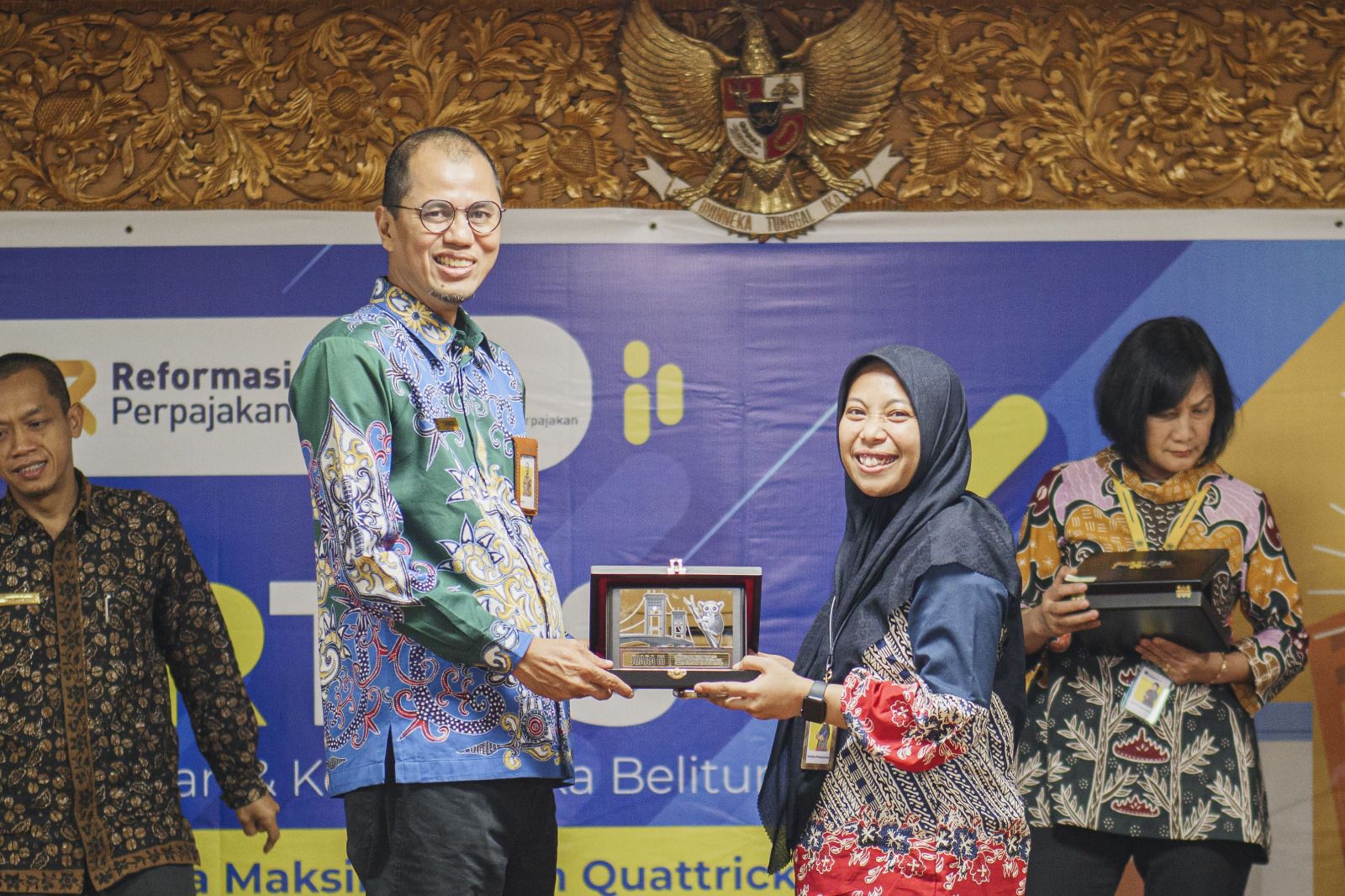 Penghargaan tersebut diberikan langsung oleh Tarmizi selaku Kepala Kanwil DJP Sumsel Babel kepada Malikha Wahyuninda selaku perwakilan KP2KP Empat Lawang.