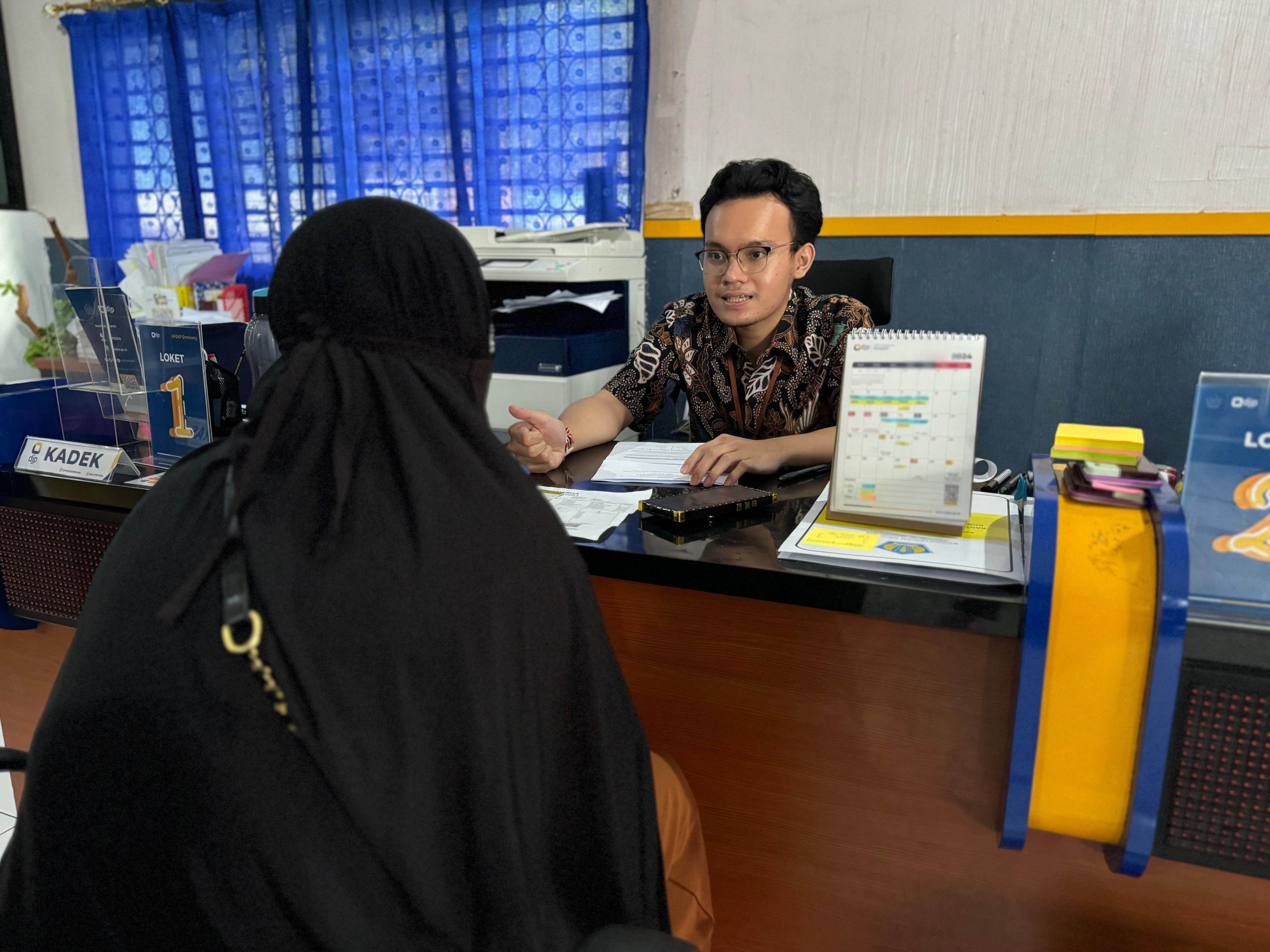 Hasni yang berprofesi sebagai Afiliator Lokapasar mengunjungi KP2KP Enrekang untuk meminta asistensi dalam pemadanan NIK- NPWP dirinya, karena program Shopee Affiliate yang diikutinya mewajibkan adanya NPWP yang telah tervalidasi dengan NIK. “Saya mau validasi NPWP dengan NIK , karena syarat pencairan komisi Shopee Affiliate harus validasi NPWP. Tapi saya bingung caranya, jadi saya kesini sekaligus mau bertanya tentang pajak yang dikenakan ke saya nanti apa saja,” ujar Hasni.