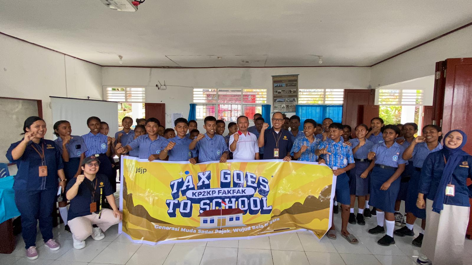 Kantor Pelayanan, Penyuluhan, dan Konsultasi Perpajakan (KP2KP) Fakfak kembali menggelar kegiatan Tax Goes To School (TGTS). TGTS ini merupakan kali kedua yang digelar oleh KP2KP Fakfak pada tahun 2024. TGTS kali ini dilaksanakan di Sekolah Menengah Pertama (SMP) Yayasan Pendidikan Kristen (YPK) Fakfak yang beralamat di Jl. D.I. Panjaitan, Fak Fak Utara, Kecamatan Fakfak, Kabupaten Fak-Fak, Papua Barat (Rabu, 24/7). Kegiatan TGTS tersebut dihadiri oleh 31 siswa Kelas IX.