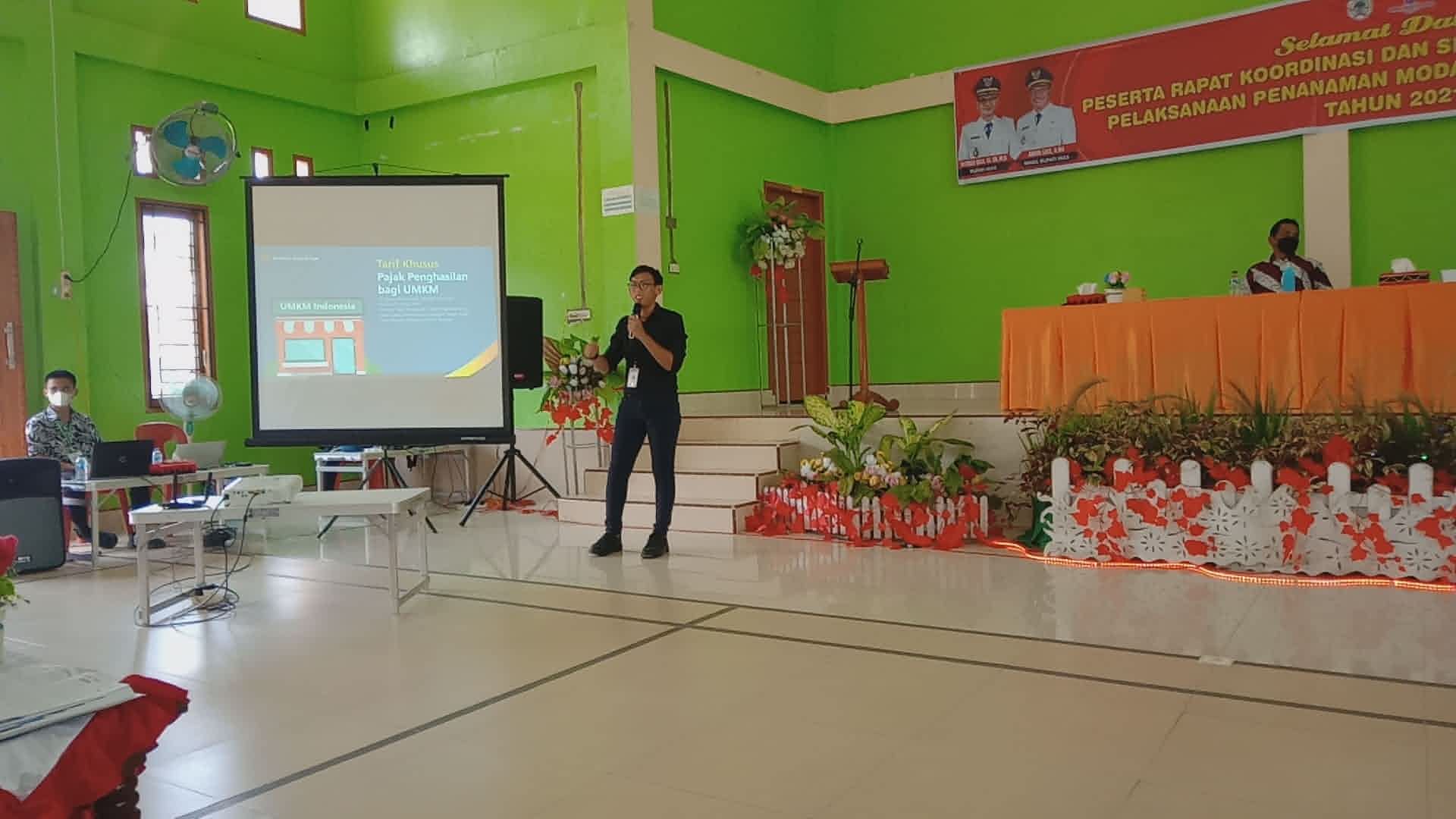 Pelaksana Kantor Penyuluhan, Pelayanan, dan Konsultasi Perpajakan (KP2KP) Gunungsitoli David Julianus Ritonga menghadiri Rapat Koordinasi dan Sinkronisasi Pembinaan Pelaksanaan Penanaman Modal Tahun 2021 sebagai narasumber materi edukasi perpajakan. Kegiatan ini dilaksanakan di Balai Serba Guna Howa-Howu, Desa Lasara Idanoi, Kabupaten Nias, Sumatera Utara (Kamis 14/10).