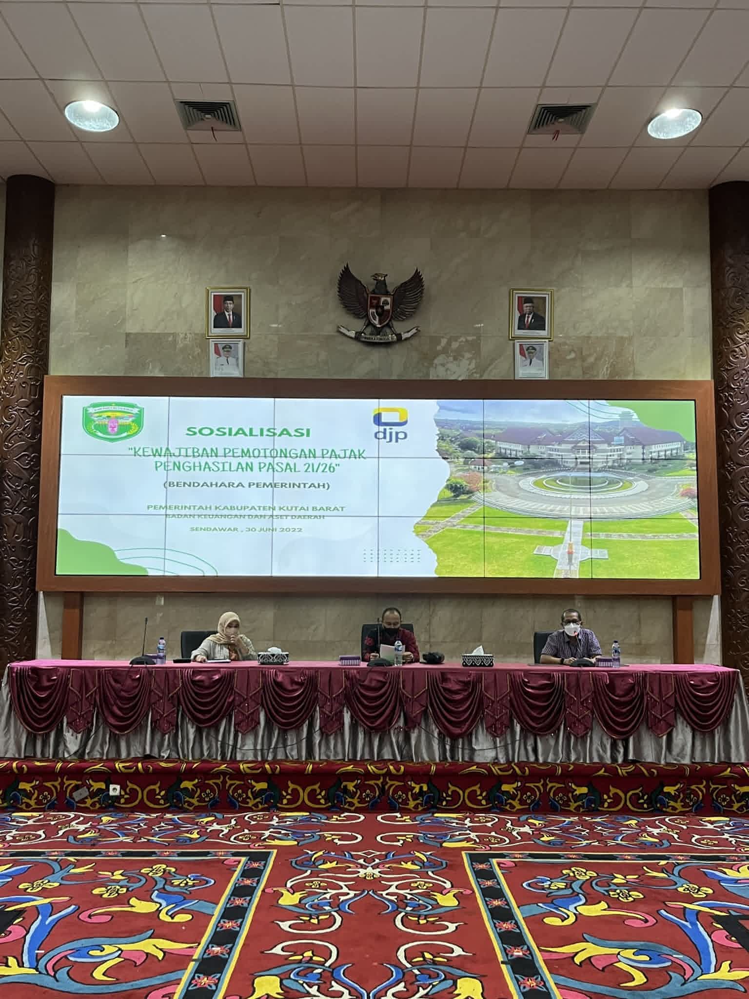 Tim Kantor Pelayanan, Penyuluhan dan Konsultasi Perpajakan (KP2KP) Sendawar menghadiri undangan dari Badan Kerja Sama Antar Daerah (BKAD) sebagai narasumber untuk mengisi acara sosialisasi Kewajiban Pemotongan Pajak Penghasilan (PPh) Pasal 21/26 di Auditorium Ajitulur Jejangkat (Kamis, 30/06).