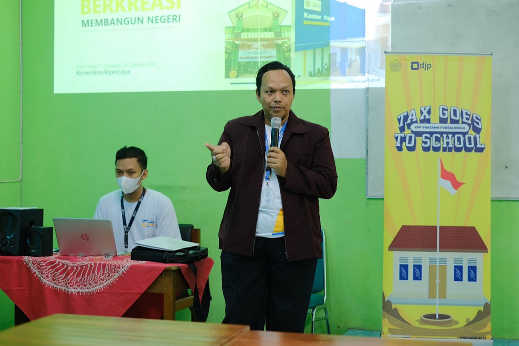 Kantor Pelayanan, Penyuluhan, dan Konsultasi Perpajakan (KP2KP) Banjarnegara mengadakan kegiatan Tax Goes To School (TGTS) 2022 dengan tagline “Generasi Muda Berkarya Untuk Bangsa” yang diikuti 32 siswa di kelas 12 IPA 3 SMA Negeri 1 Wanadadi Banjarnegara, Banjarnegara (Rabu, 26/10).