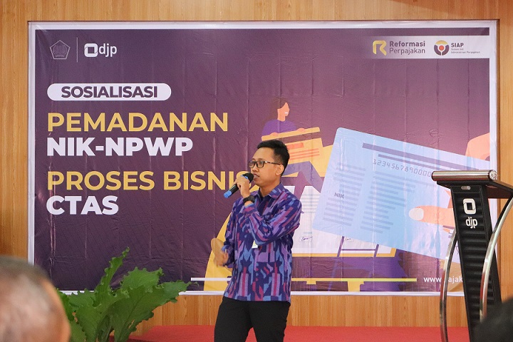 Kegiatan sosialisasi ini bertujuan untuk memberikan informasi tentang proses bisnis Core Tax Administration System (CTAS) dan validasi pemadanan NIK dengan NPWP. Informasi tersebut penting untuk disebar luaskan kepada Wajib Pajak mengingat adanya pembaruan pada format NPWP pada tahun 2024 yakni cukup menggunakan Nomor Induk Kependudukan pada.