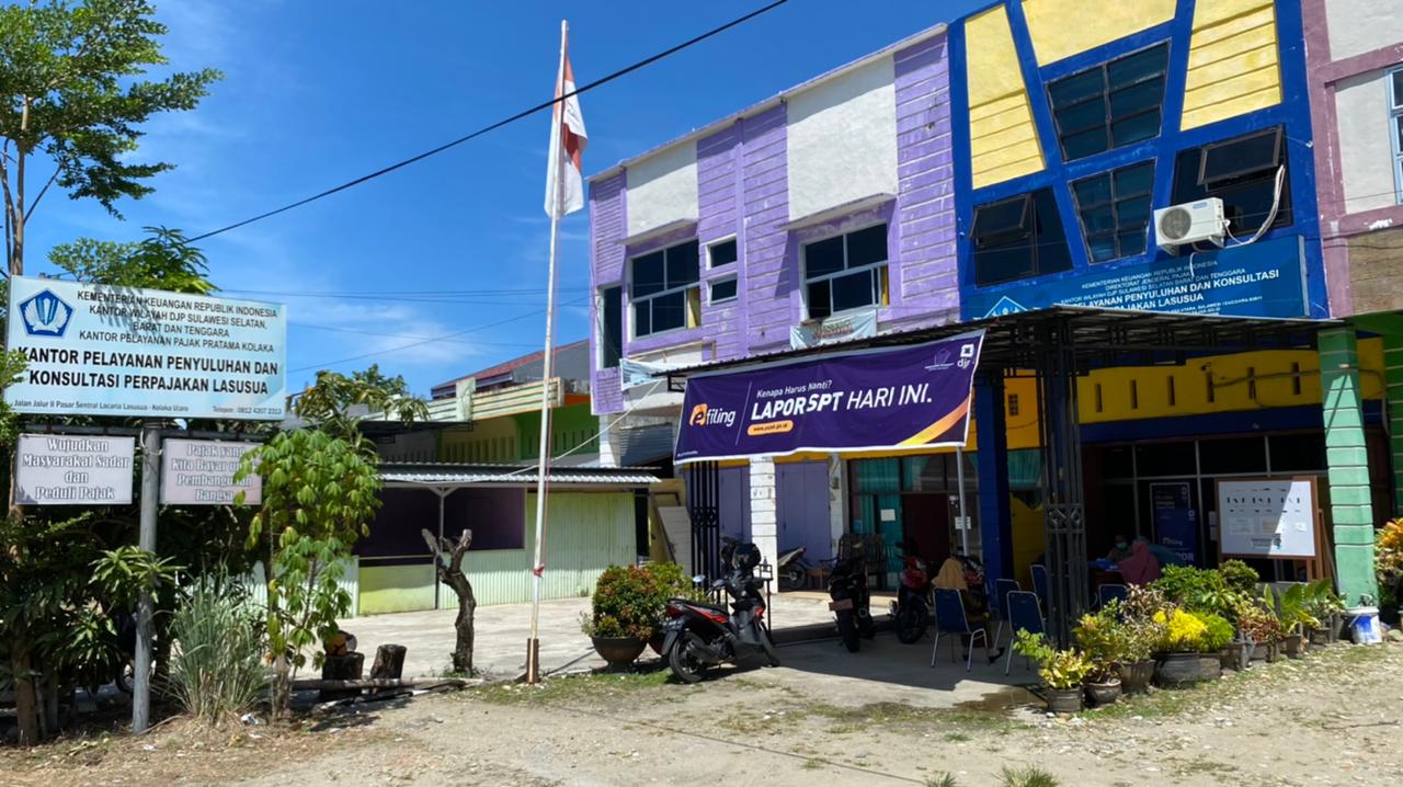 Kantor Pelayanan, Penyuluhan, dan Konsultasi Perpajakan (KP2KP) Lasusua di Kabupaten Kolaka Utara KP2KP Lasusua menyiapkan antrean khusus untuk layanan konsultasi SPT Tahunan di Tempat Pelayanan Terpadu KP2KP Lasusua (Senin, 8/2). Layanan ini dibuka sampai akhir batas waktu pelaporan yaitu 31 Maret mendatang dengan tetap menerapkan protokol kesehatan Covid-19 yang ditetapkan pemerintah