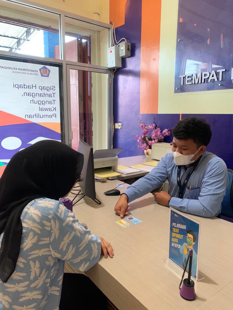Petugas TPT KP2KP Lasusua menjelaskan kepada wajib pajak mengenai implementasi penggunaan NIK sebagai NPWP sesuai dengan Peraturan Menteri Keuangan (PMK) nomor 112/PMK.03/2022 tentang Nomor Pokok Wajib Pajak bagi Wajib Pajak Orang Pribadi, Wajib Pajak Badan, dan Wajib Pajak Instansi Pemerintah.