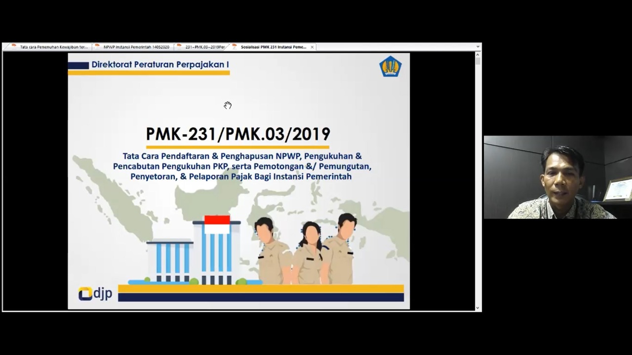 Kantor Pelayanan Penyuluhan dan Konsultasi Perpajakan (KP2KP) Lasusua mengadakan sosialisasi pelaksanaan PMK-231/PMK.03/2019 tentang Tata Cara Pendaftaran dan Penghapusan Nomor Pokok Wajib Pajak (NPWP), Pengukuhan dan Pencabutan Pengukuhan Pengusaha Kena Pajak (PKP), serta Pemotongan dan/atau Pemungutan, Penyetoran, dan Pelaporan Pajak bagi Instansi Pemerintah secara daring melalui aplikasi zoom di Lasusua (Selasa, 7/7). Sebanyak 30 bendahara instansi pemerintah pusat maupun daerah di wilayah kerja KP2KP Lasusua antusias mengikuti sosialisasi ini.