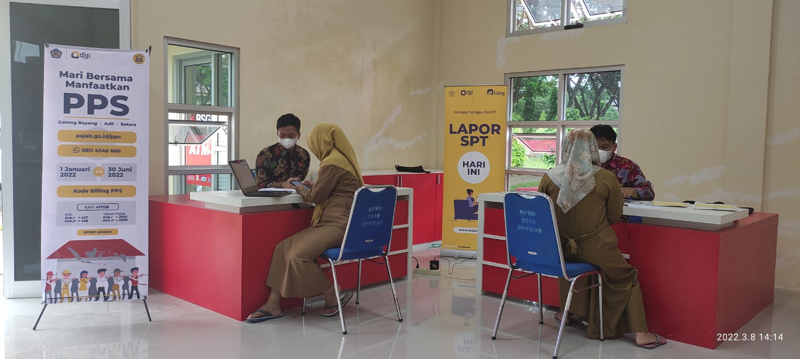 “Saya sudah imbau kepada pegawai yang namanya tertera di daftar pegawai yang belum lapor SPT Tahunan untuk segera datang dan saya berterimakasih kepada rekan dari Pajak Limboto yang sudah mau membantu pelaporan SPT Tahunan nanti kegiatan bisa dilakukan di ruangan baru kami, itu bisa dijadikan pos pelayanan pajak sementara pak dan apabila pegawai dari dinas lain yang belum lapor juga bisa diimbau untuk datang kesini," ucap Husin.