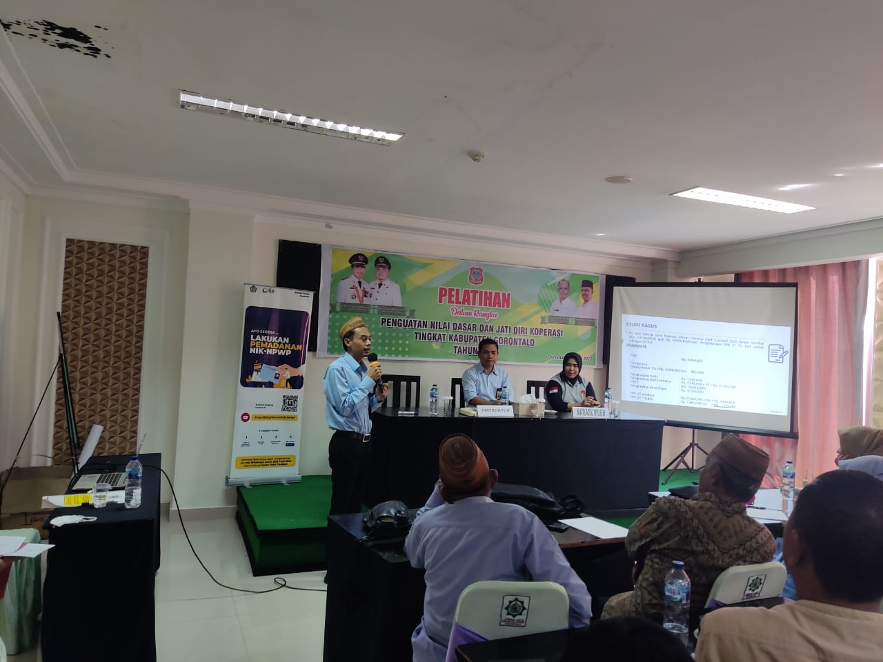 Kantor Pelayanan, Penyuluhan, dan Konsultasi Perpajakan (KP2KP) Limboto memberikan penyuluhan di Hotel El Madina Kota Gorontalo, Kompleks Asrama Haji Kota Gorontalo (Rabu, 17/5). Penyuluhan ini untuk memenuhi undangan dari Dinas Koperasi dan Usaha Kecil dan Menengah (UKM) Kabupaten Gorontalo dan juga dalam rangka pemberian pelatihan dan penyuluhan dengan tema “Edukasi Perpajakan tentang Kewajiban Perpajakan WP Koperasi”.