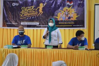 Kantor Pelayanan Penyuluhan dan Konsultasi Perpajakan (KP2KP) Limboto bersama Sekolah Menengah Pertama (SMP) Negeri 2 Kwandang mengadakan Pajak Bertutur di Molingkapoto, Kwandang, kabupaten Gorontalo Utara (Rabu, 25/8).