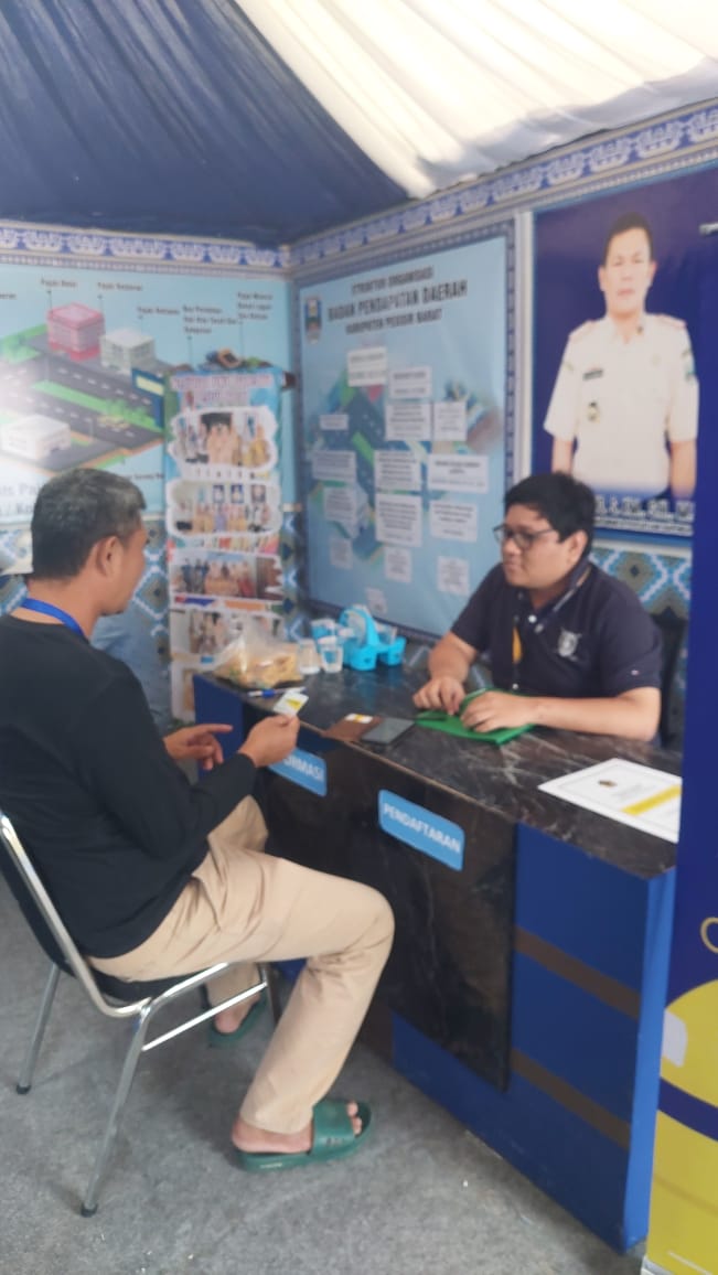 Kantor Pelayanan, Penyuluhan, dan Konsultasi Perpajakan (KP2KP) Liwa mengadakan kegiatan pojok pajak dalam rangka asistensi pelaporan Surat Pemberitahuan (SPT) Tahunan dan pemadanan Nomor Induk Kependudukan (NIK) menjadi Nomor Pokok Wajib Pajak (NPWP) di acara Krui Fair 2024 yang diadakan di Lapangan Pemerintah Daerah Pesisir Barat (Kamis, 11/7).