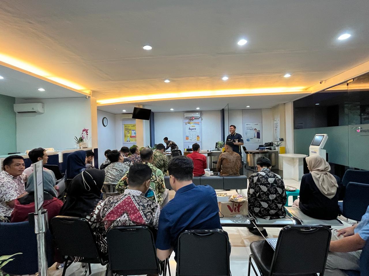 Kantor Pelayanan, Penyuluhan, dan Konsultasi Perpajakan (KP2KP) Majenang menghadiri undangan Bank Mandiri KCP (Kantor Cabang Pembantu) Majenang dalam rangka pemberian asistensi dan pendampingan pelaporan SPT Tahunan bagi seluruh karyawan (Selasa, 5/3). Kegiatan dilaksanakan di ruang layanan Bank Mandiri KCP Majenang, dengan dihadiri 30 orang peserta.