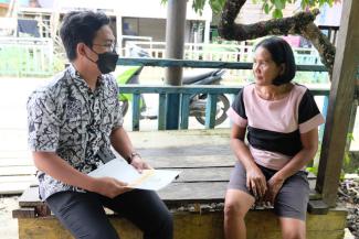 Asnan Anwari selaku Petugas Penyuluh KP2KP Malinau melakukan kunjungan lapangan kepada wajib pajak pelaku UMKM di daerah Pelita Kanaan. Asnan melakukan wawancara dengan Merry Christiani selaku pemilik usaha outlet minuman dan toko kelontong.