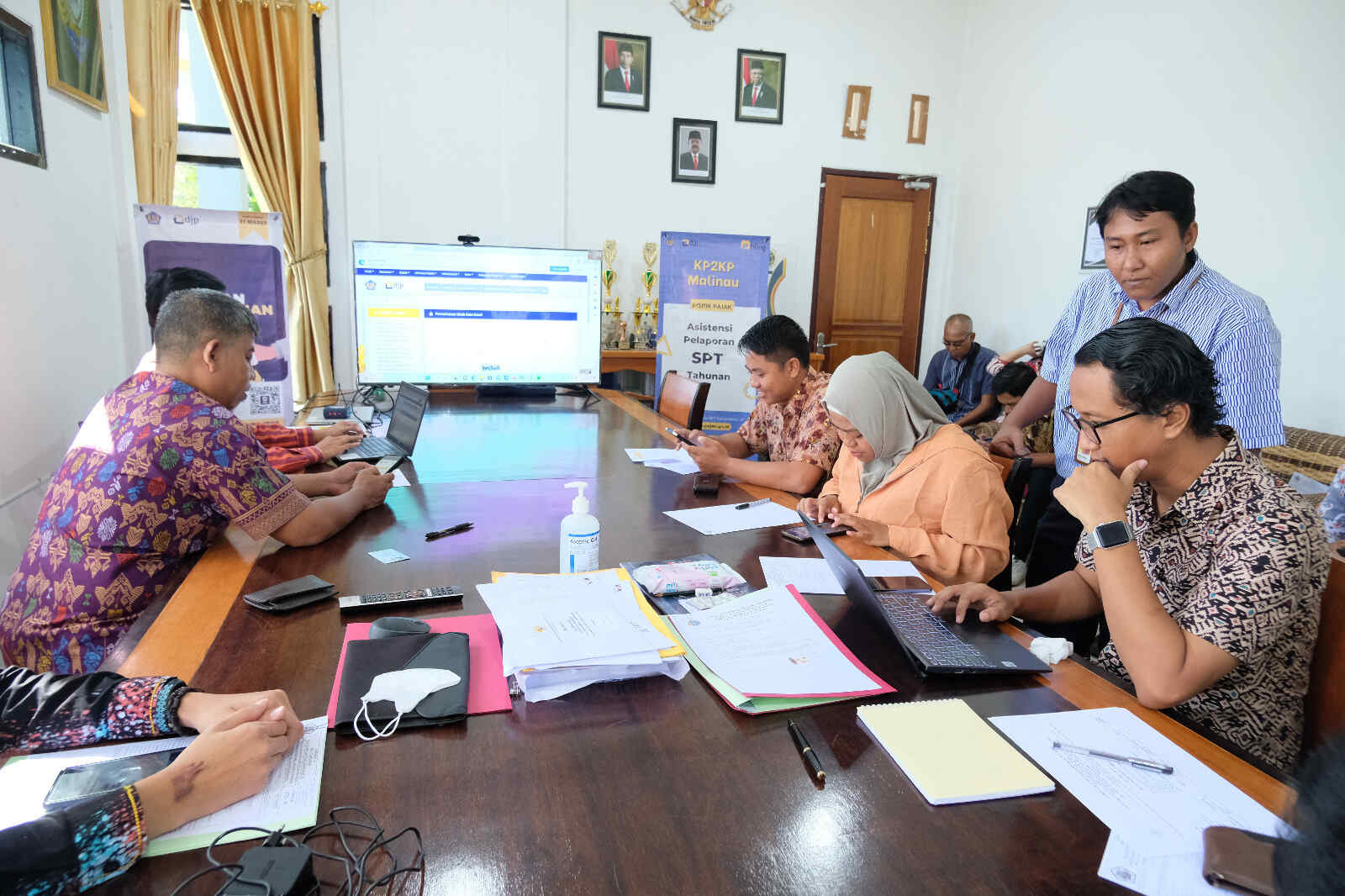 Kantor Pelayanan, Penyuluhan, dan Konsultasi Perpajakan (KP2KP) Malinau melakukan kegiatan asistensi pelaporan Surat Pemberitahuan (SPT) Tahunan melalui e-Filing sekaligus melakukan kegiatan pemadanan NIK-NPWP di Badan Pertanahan Nasional (BPN) Kabupaten Malinau (Kamis, 30/3).