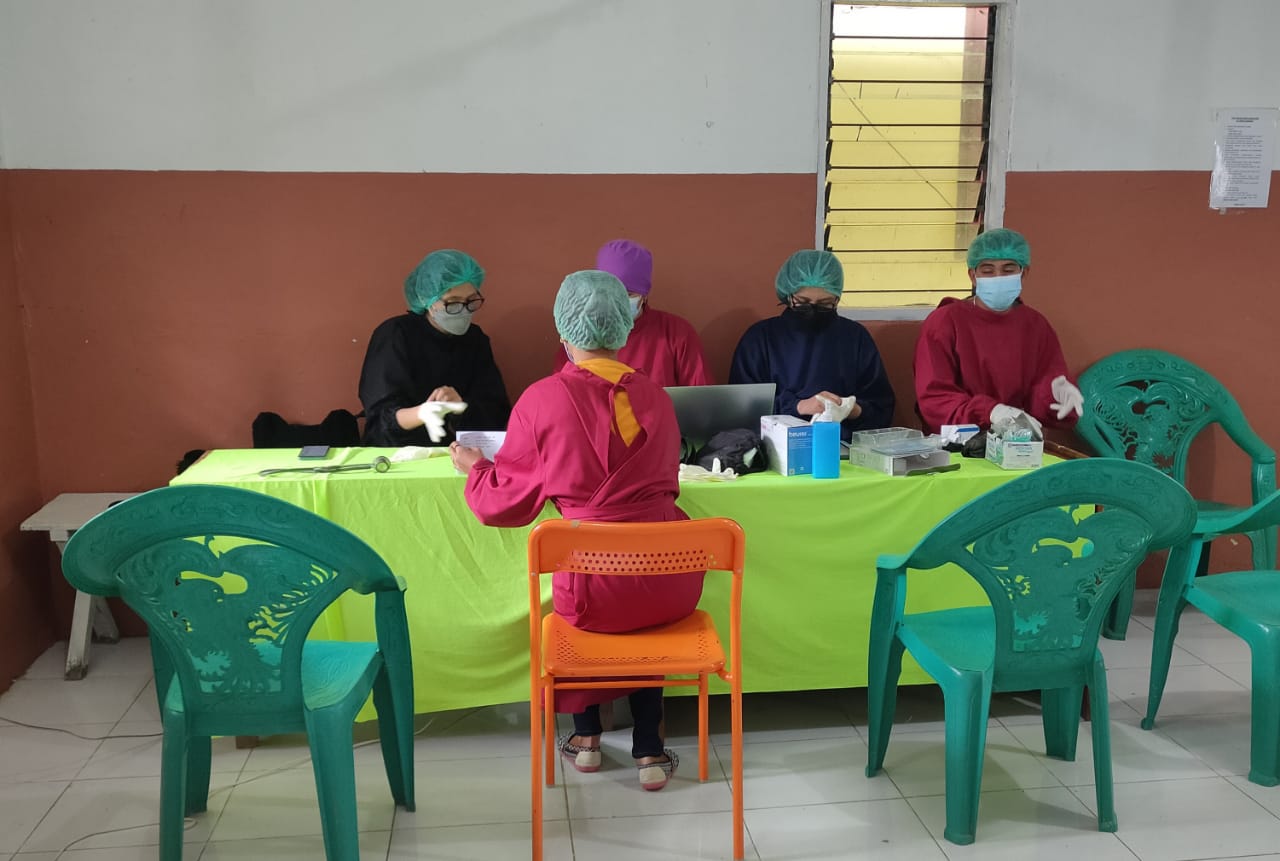 Pegawai KP2KP Mamasa menjalani proses penyaringan oleh tenaga kesehatan RS Banua Mamase sebelum dilakukan vaksinasi. Berdasarkan hasil penyaringan, seluruh pegawai KP2KP Mamasa dapat diberikan suntikan vaksin.
