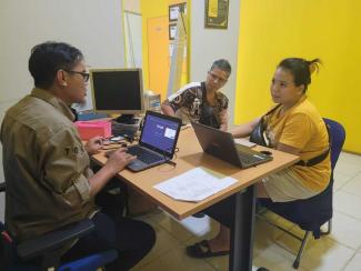 Petugas penyuluhan Kantor Pelayanan, Penyuluhan, dan Konsultasi Perpajakan (KP2KP) Nanga Pinoh memberikan layanan konsultasi perpajakan kepada wajib pajak sepasang suami istri di ruang konsultasi KP2KP Nanga Pinoh, Kabupaten Melawi (Kamis, 2/2). Layanan konsultasi yang dilakukan pada kegiatan tersebu terkait konsultasi pelaporan Surat Pemberitahuan (SPT) Badan milik wajib pajak.