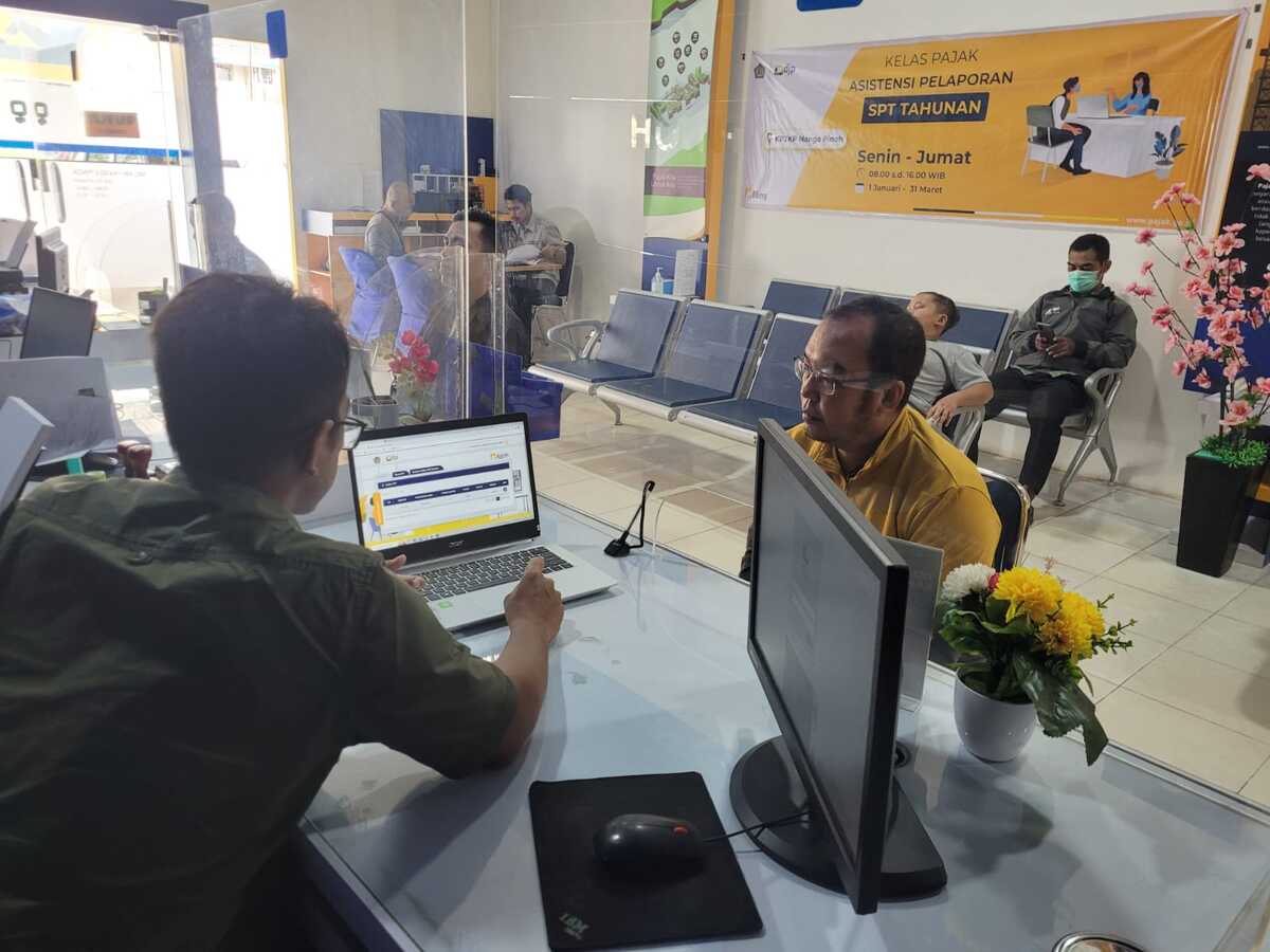 Petugas pelayanan Kantor Pelayanan, Penyuluhan, dan Konsultasi Perpajakan (KP2KP) Nanga Pinoh melakukan asistensi pengisian surat pemberitahuan (SPT) tahunan badan milik wajib pajak di tempat pelayanan terpadu KP2KP Nanga Pinoh (Kamis, 09/03).