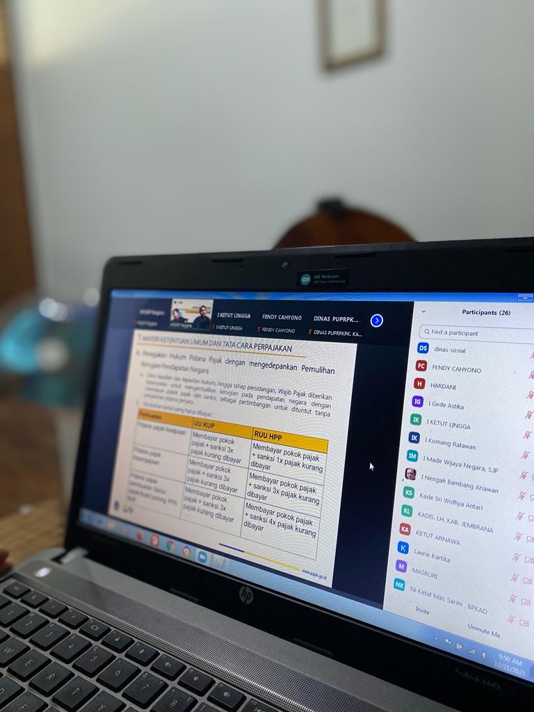 Kantor Pelayanan, Penyuluhan, dan Konsultasi Perpajakan (KP2KP) Negara kembali mengadakan edukasi terkait Undang-Undang Harmonisasi Peraturan Perpajakan (UU HPP) secara daring melalui Zoom Meeting (Selasa, 21/12). Edukasi ini merupakan Edukasi UU HPP kedua yang diadakan KP2KP Negara setelah sebelumnya mengadakan Edukasi UU HPP bekerja sama dengan Kanwil DJP Bali