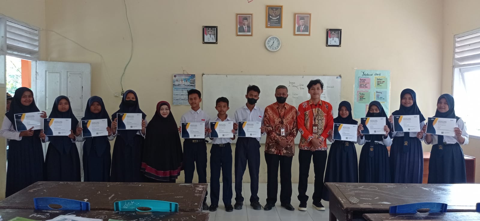 Maksud kedatangan petugas KP2KP Nunukan ke SMPN 2 Nunukan Selatan kali ini yaitu untuk membagikan sertifikat kepada siswa SMPN 2 Nunukan Selatan. Sertifikat tersebut dibagikan kepada siswa SMPN 2 Nunukan Selatan karena telah menjadi peserta dalam kegiatan Pajak Bertutur 2022 yang diadakan oleh KP2KP Nunukan. Ada sebanyak lima puluh sertifikat yang dibagikan dalam kesempatan kali ini. Pembagian sertifikat ini dibagikan secara simbolis kepada sebelas orang siswa SMPN 2 Nunukan.