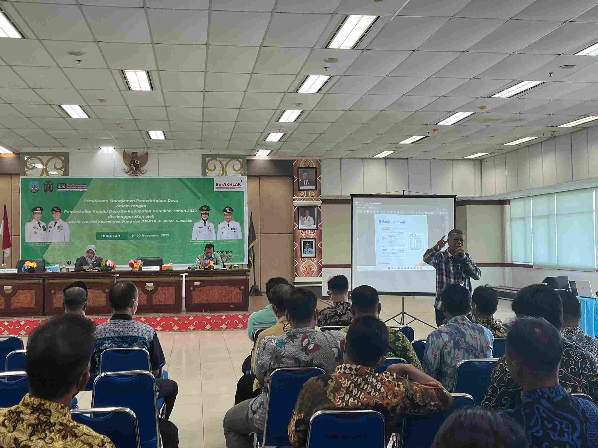 Pembekalan Kepala Desa Se-Kabupaten Nunukan Provinsi Kalimantan Utara Tahun 2022 berlangsung selama dua hari mulai Rabu, 9 November sampai Kamis, 10 November 2022.