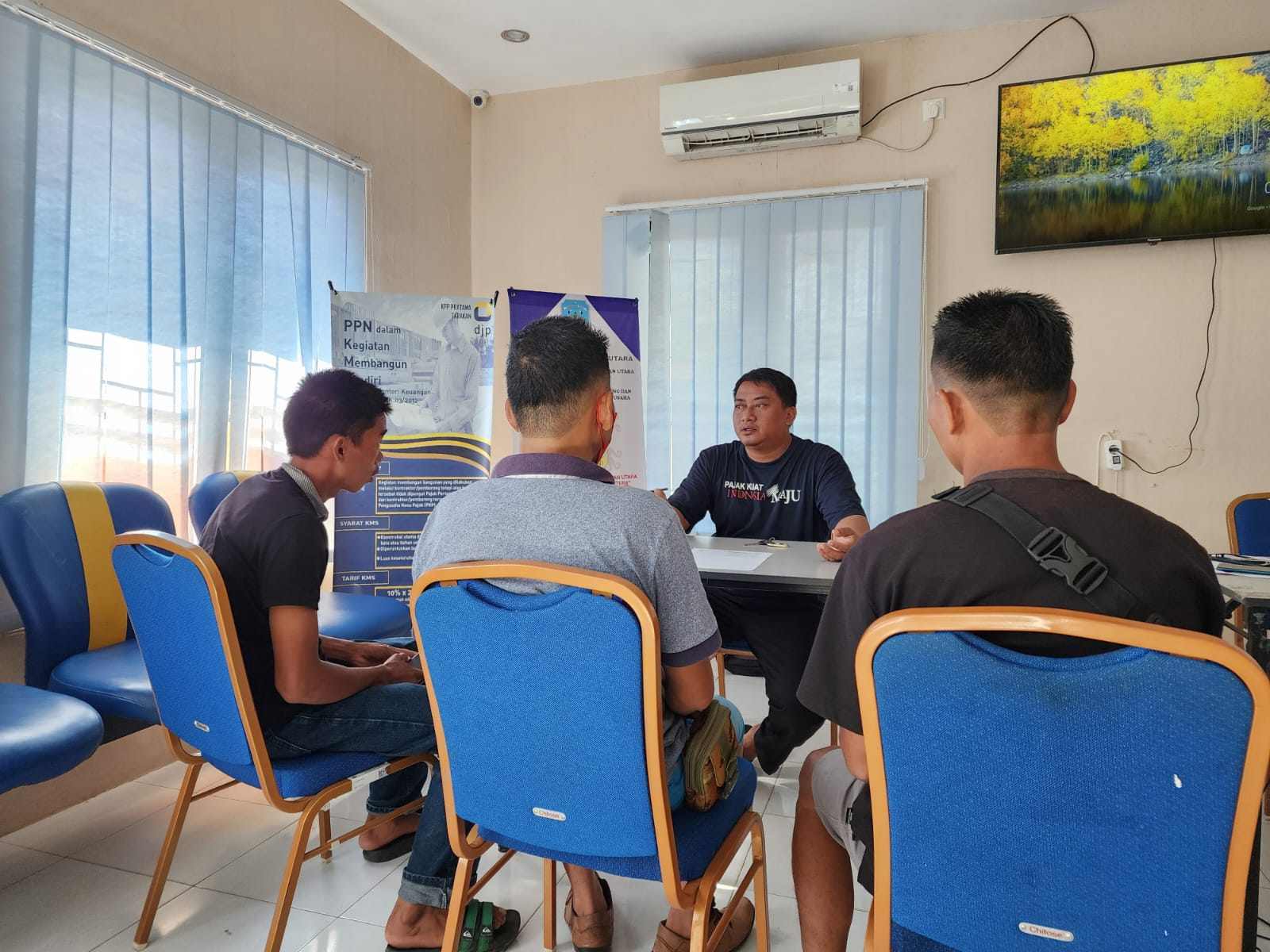Tiga orang perwakilan dari Desa Tantalujuk, Kecamatan Lumbis Ogong, Kabupaten Nunukan mendatangi Kantor Pelayanan, Penyuluhan, dan Konsultasi Perpajakan (KP2KP) Nunukan di Kab. Nunukan (Jumat, 4/11).
