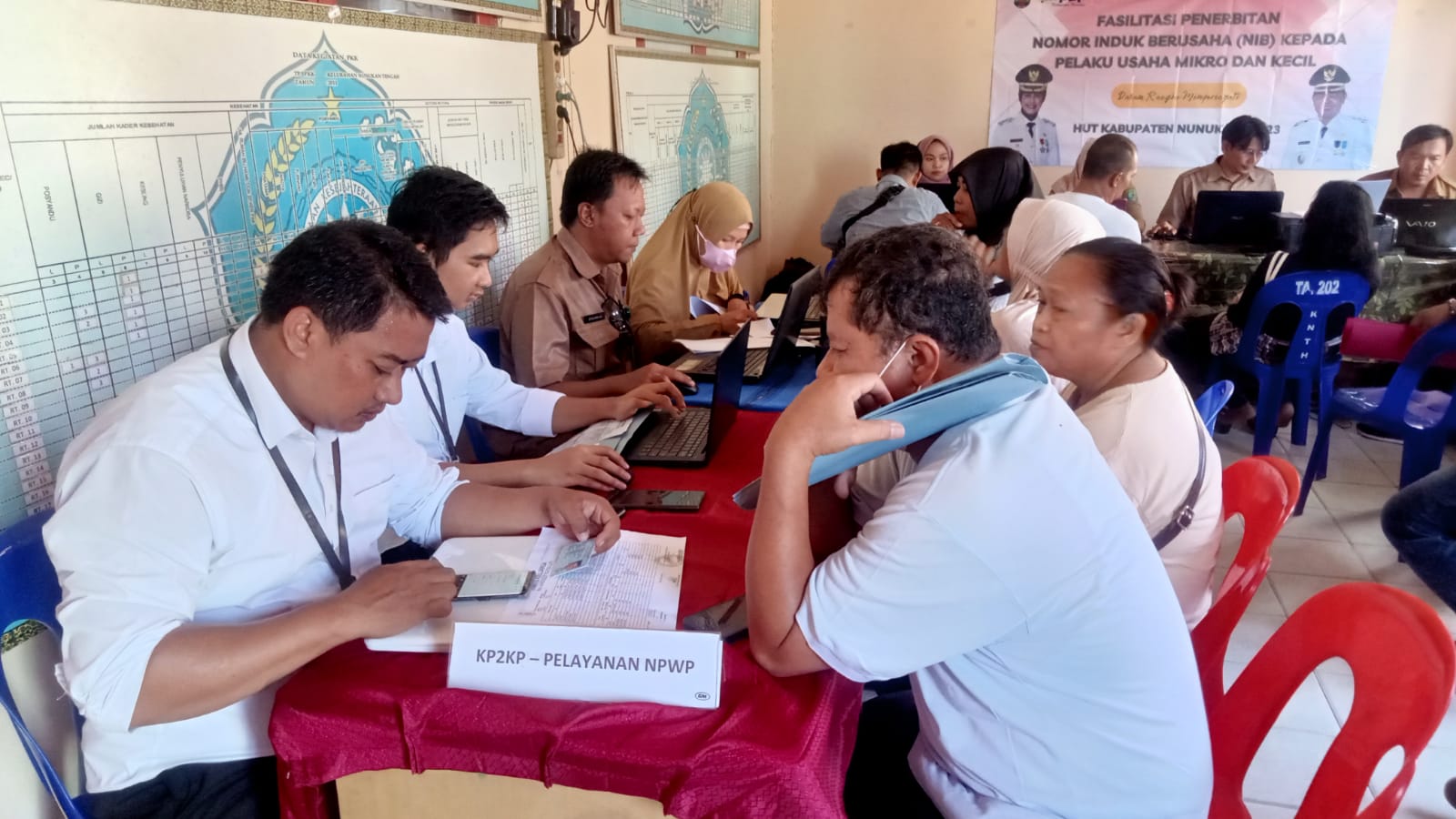 Pada kegiatan kali ini, KP2KP Nunukan bekerja sama dengan Dinas Penanaman Modal dan Pelayanan Terpadu Satu Pintu (DPMPTSP) Kabupaten Nunukan. DPMPTSP Kabupaten Nunukan memberikan pelayanan terkait penerbitan Nomor Induk Berusaha (NIB) sedangkan KP2KP Nunukan memberikan pelayanan terkait pendaftaran Nomor Pokok Wajib Pajak (NPWP) dan penyelesaian NPWP yang bermasalah.