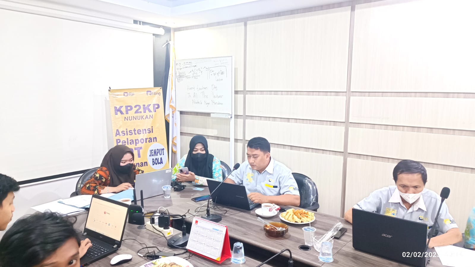 Tiga orang petugas Kantor Pelayanan, Penyuluhan, dan Konsultasi Perpajakan (KP2KP) Nunukan mendatangi Perusahaan Umum Daerah (Perumda) Air Minum Tirta Taka Nunukan yang ada di Kab. Nunukan (Kamis, 2/2). Kedatangan petugas kali ini, yaitu untuk melanjutkan kegiatan Jemput Bola Layanan Perpajakan (Jebol Lapak) yang telah dilaksanakan hari sebelumnya (Rabu, 1/2).