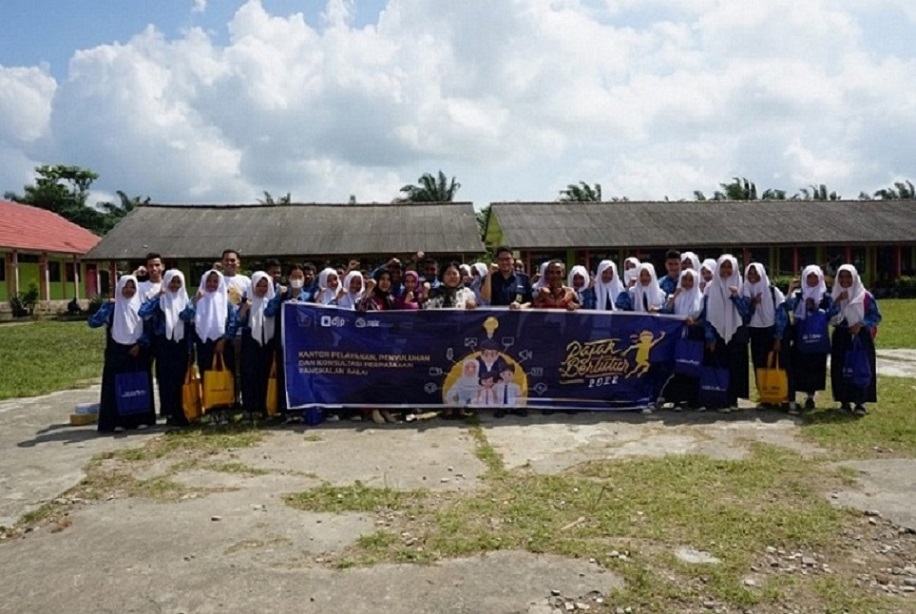 Kantor Pelayanan, Penyuluhan, dan Konsultasi Perpajakan (KP2KP) Pangkalan Balai bekerja sama dengan Sekolah Menengah Pertama (SMP) Negeri 2 Tanjung Lago melaksanakan kegiatan Pajak Bertutur 2022 secara luring di Pangkalan Balai, Banyuasin (Rabu, 25/8).