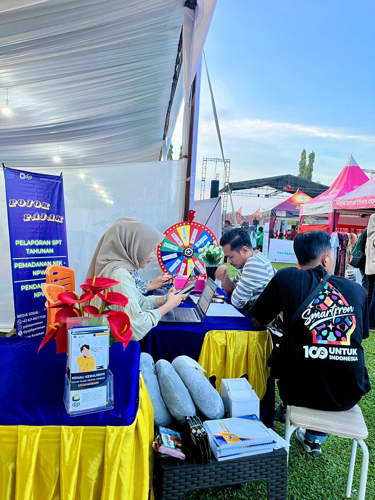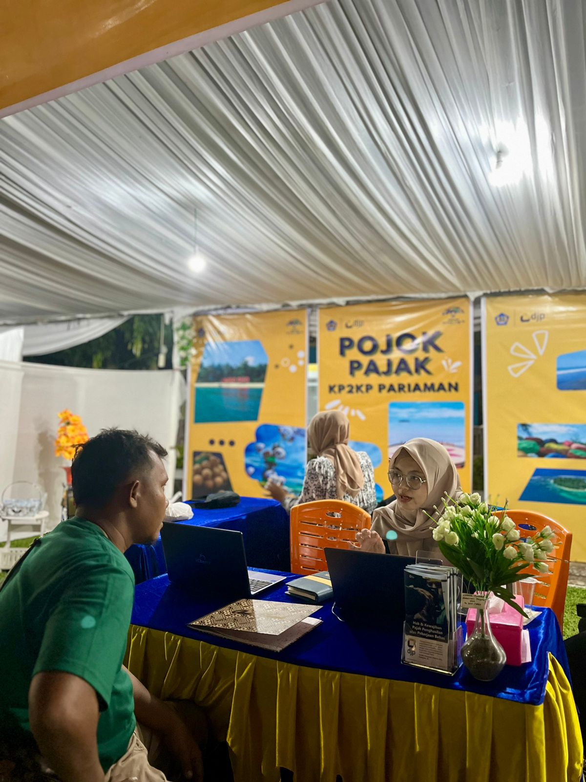 Kantor Pelayanan, Penyuluhan, dan Konsultasi Perpajakan (KP2KP) Pariaman membuka layanan Pojok Pajak Bazar Usaha Mikro, Kecil, dan Menengah (UMKM) dan Ekonomi Kreatif (Ekraf) di Lapangan Merdeka Kota Pariaman dalam rangka Pesona Hoyak Tabuik Piaman 2024 (Selasa, 16/7).