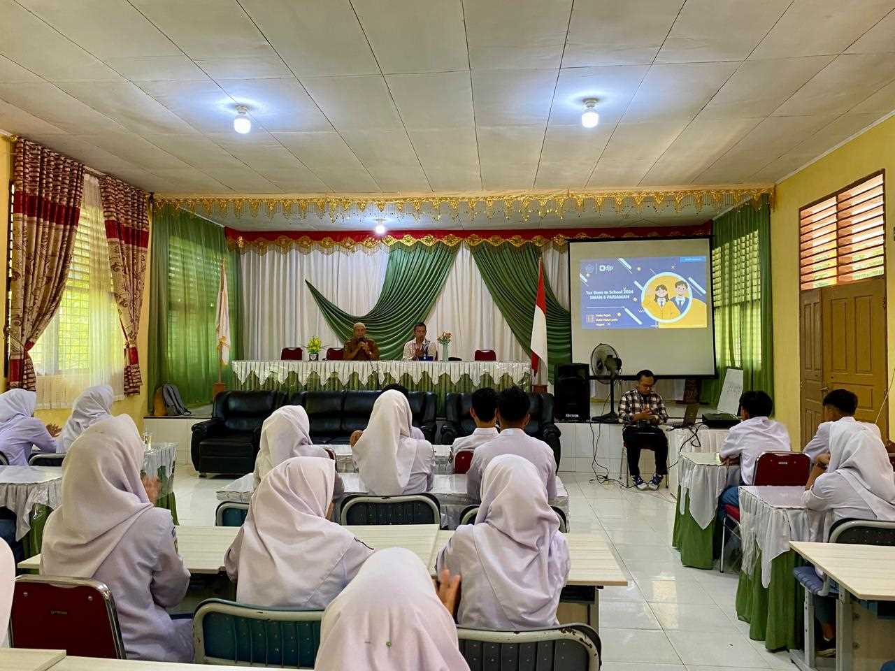 Kantor Pelayanan, Penyuluhan, dan Konsultasi Perpajakan (KP2KP) Pariaman menyelenggarakan kegiatan Tax Goes To School (TGTS) di Sekolah Menengah Atas Negeri (SMAN) 6 Pariaman (Selasa, 23/4). Kegiatan ini dilaksanakan pukul 09:00 pagi dan diikuti oleh 39 pelajar SMAN 6 Pariaman.