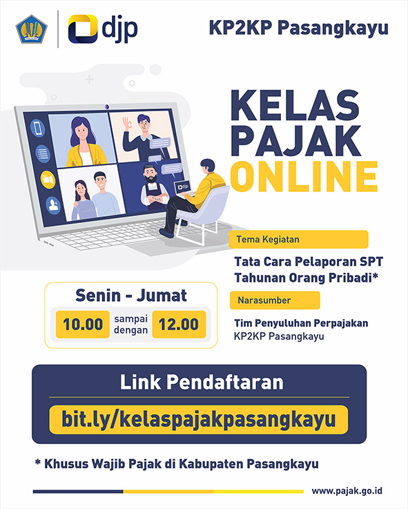 Kelas pajak yang sudah dimulai sejak awal Maret 2021 ini diadakan setiap hari kerja. Narasumber kelas pajak adalah pegawai KP2KP Pasangkayu yang bekerja secara Work from Home (WFH).