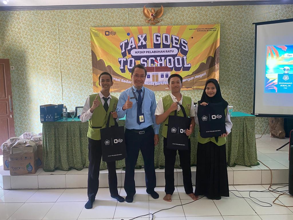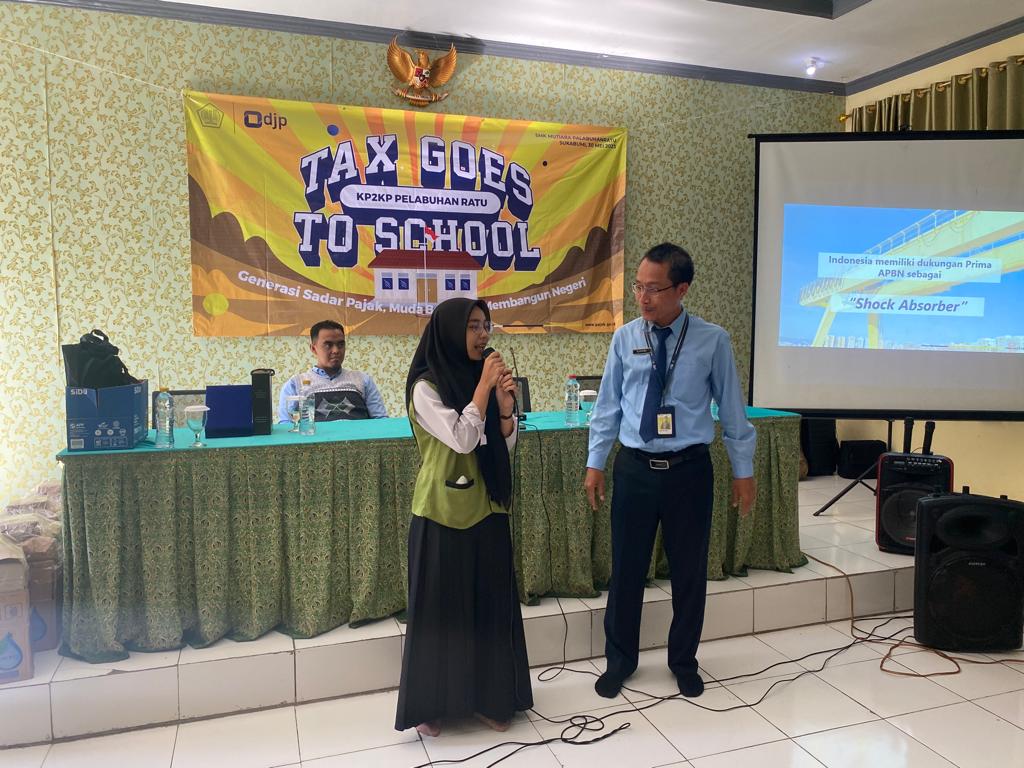 Kepala KP2KP Pelabuhan Ratu Djoko Widodo menyampaikan bahwa Tax Goes To School merupakan kegiatan penyuluhan perpajakan dengan target pelajar sekolah yang rutin dilaksanakan setiap tahunnya dengan tujuan agar para pelajar dapat mengenal dan mengetahui manfaat pajak.
