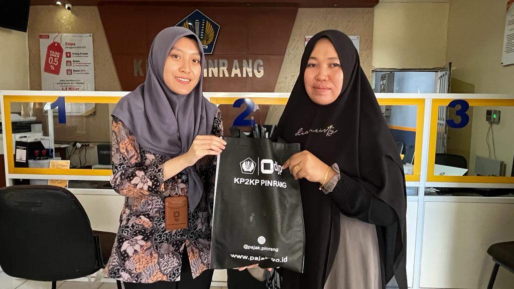 KP2KP Pinrang memberikan goodie bag kepada Ida sebagai apresiasi karena telah taat peraturan perpajakan. KP2KP Pinrang juga berharap agar wajib pajak lain dapat menjalankan kewajiban perpajakannya dengan taat.