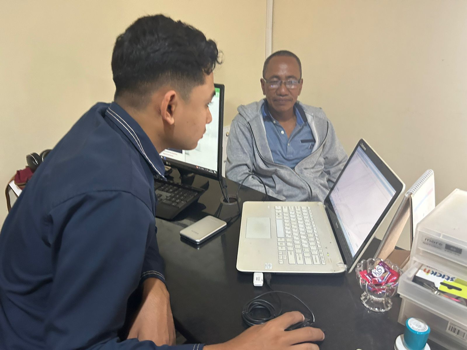 Kantor Pelayanan, Penyuluhan, dan Konsultasi Perpajakan (KP2KP) Pinrang menerima Kedatangan Pengurus Wajib Pajak Badan yang bergerak dalam bidang konstruksi untuk berkonsultasi mengenai kendala aplikasi e-Faktur yang dialaminya di Helpdesk KP2KP Pinrang, Kab. Pinrang (Rabu, 23/10).