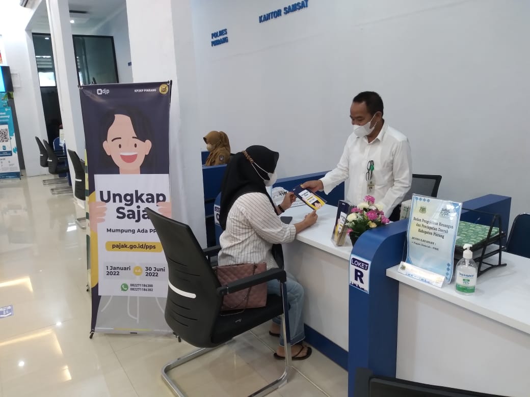Kantor Pelayanan Penyuluhan dan Konsultasi Perpajakan (KP2KP) Pinrang melaksanakan kegiatan kampanye Program Pengungkapan Sukarela (PPS) kepada masyarakat yang hadir di Mal Pelayanan Publik (MPP) Pinrang, Kabupaten Pinrang (Senin, 20/6). MPP sendiri merupakan tempat layanan terpadu dan terpusat bagi berbagai macam layanan publik di Kabupaten Pinrang. Layanan yang diberikan KP2KP Pinrang dalam kegiatan ini berfokus pada konsultasi dan edukasi terkait PPS.