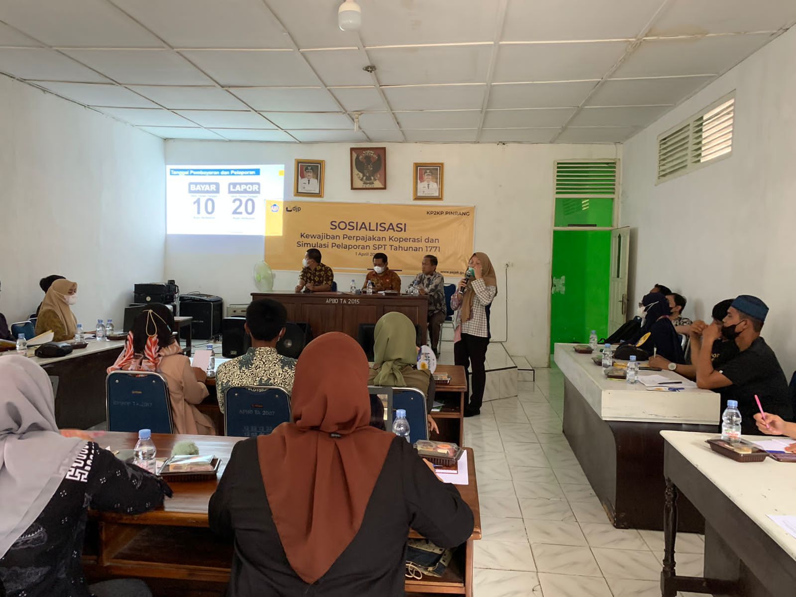 Kantor Pelayanan, Penyuluhan, dan Konsultasi Perpajakan (KP2KP) Pinrang bersama Kantor Pelayanan Pajak (KPP) Pratama Parepare menggelar sosialisasi kewajiban perpajakan bagi Wajib Pajak Badan Koperasi dan simulasi pelaporan SPT Tahunan 1771 di aula Dinas Koperasi dan UKM (Jumat, 01/04). Sosialisasi tersebut dihadiri oleh 29 pengurus koperasi ditambah para pelaku UKM yang ada di Kabupaten Pinrang.