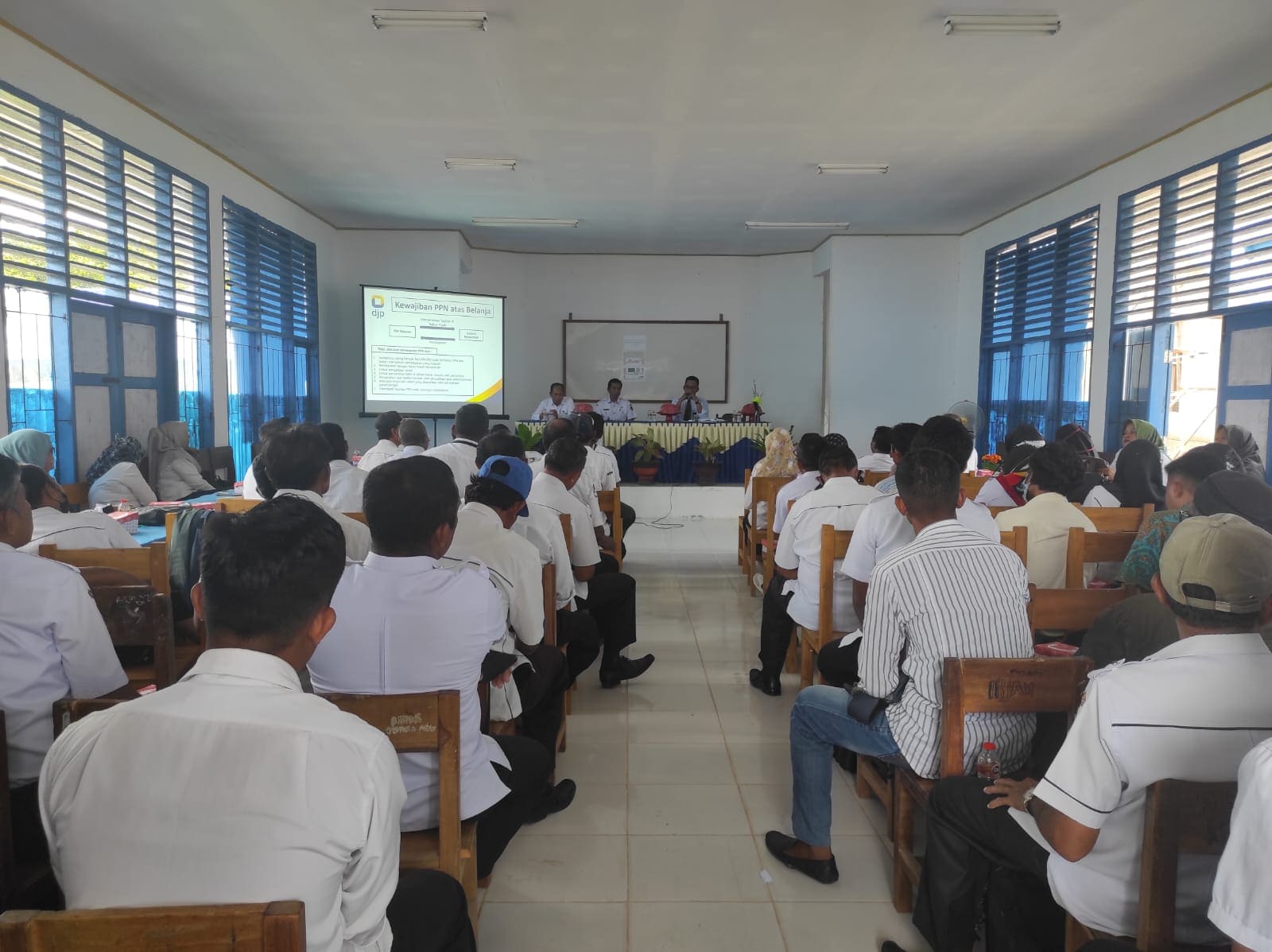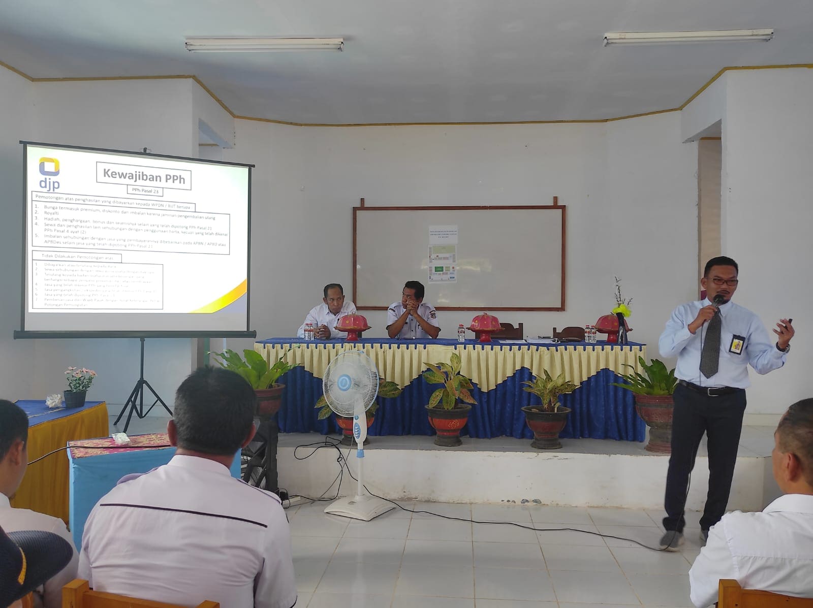 Kantor Pelayanan, Penyuluhan, dan Konsultasi Perpajakan (KP2KP) Raha mengadakan sosialisasi kewajiban perpajakan pada satuan pendidikan Sekolah Dasar (SD) dan Sekolah Menengah Pertama (SMP) se-Kabupaten Muna Barat. Kegiatan sosialisasi kewajiban perpajakan bendahara kali ini diadakan di Aula SMP Negeri 1 Tiworo Tengah (Rabu, 23/11).