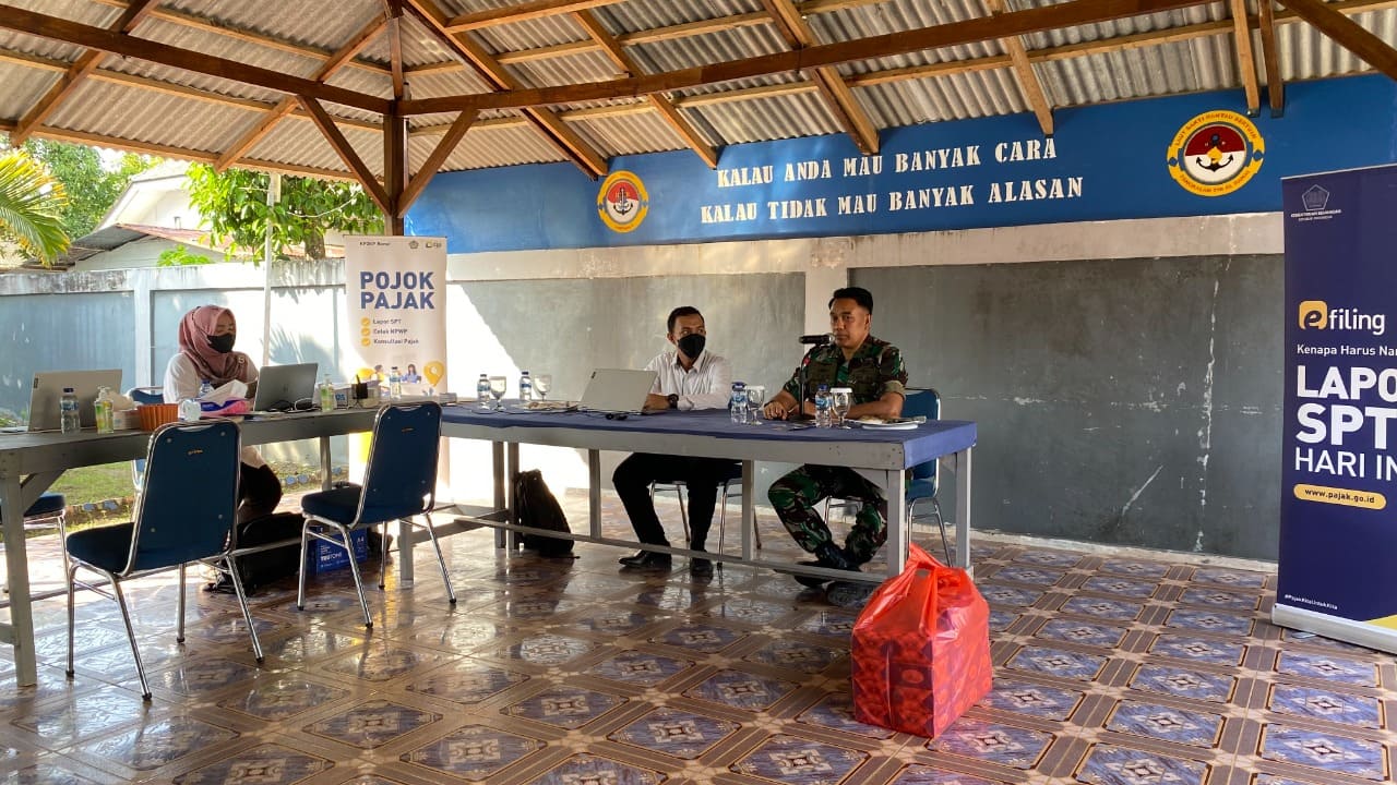 Kantor Pelayanan, Penyuluhan, dan Konsultasi Perpajakan (KP2KP) Ranai menggelar pojok pajak di Markas Komando Pangkalan TNI Angkatan Laut Ranai (Senin, 14/3). Tujuan pelaksanaan pojok pajak ini untuk memberikan asistensi pelaporan SPT Tahunan PPh Orang Pribadi para Prajurit TNI AL Ranai.