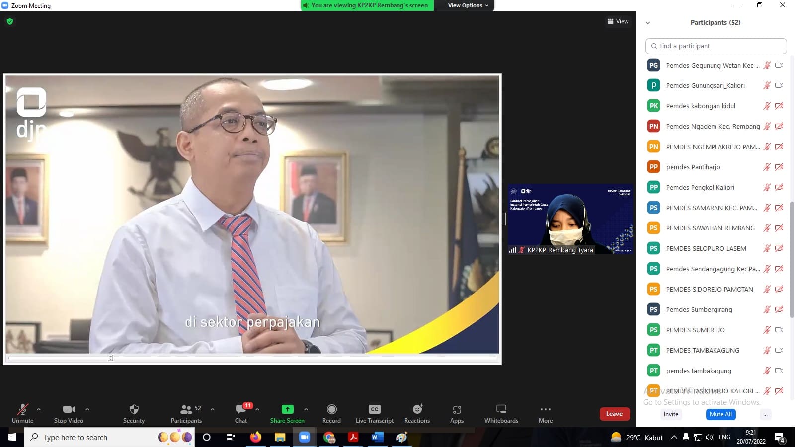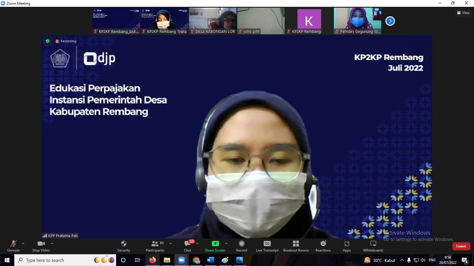 Kantor Pelayanan Penyuluhan dan Konsultasi Perpajakan (KP2KP) Rembang mengadakan acara Edukasi Perpajakan Instansi Pemerintah Desa melalui media Zoom meeting di Rembang yang dilaksanakan selama 3 hari mulai (Selasa, 19/7)