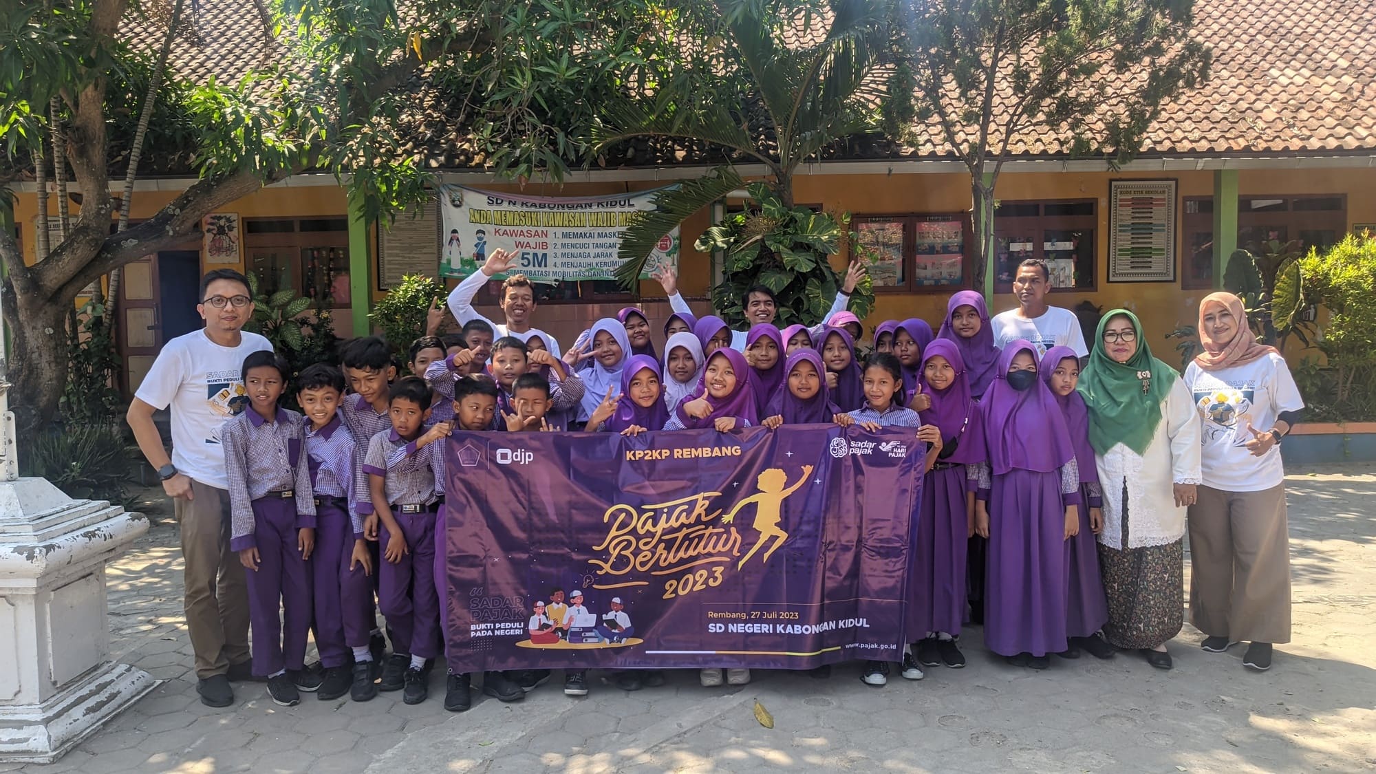 Kantor Pelayanan, Penyuluhan, dan Konsultasi Perpajakan (KP2KP) Rembang melaksanakan Pajak Bertutur di Sekolah Dasar Negeri (SDN) Kabongan Kidul, Rembang (Kamis, 27/7).