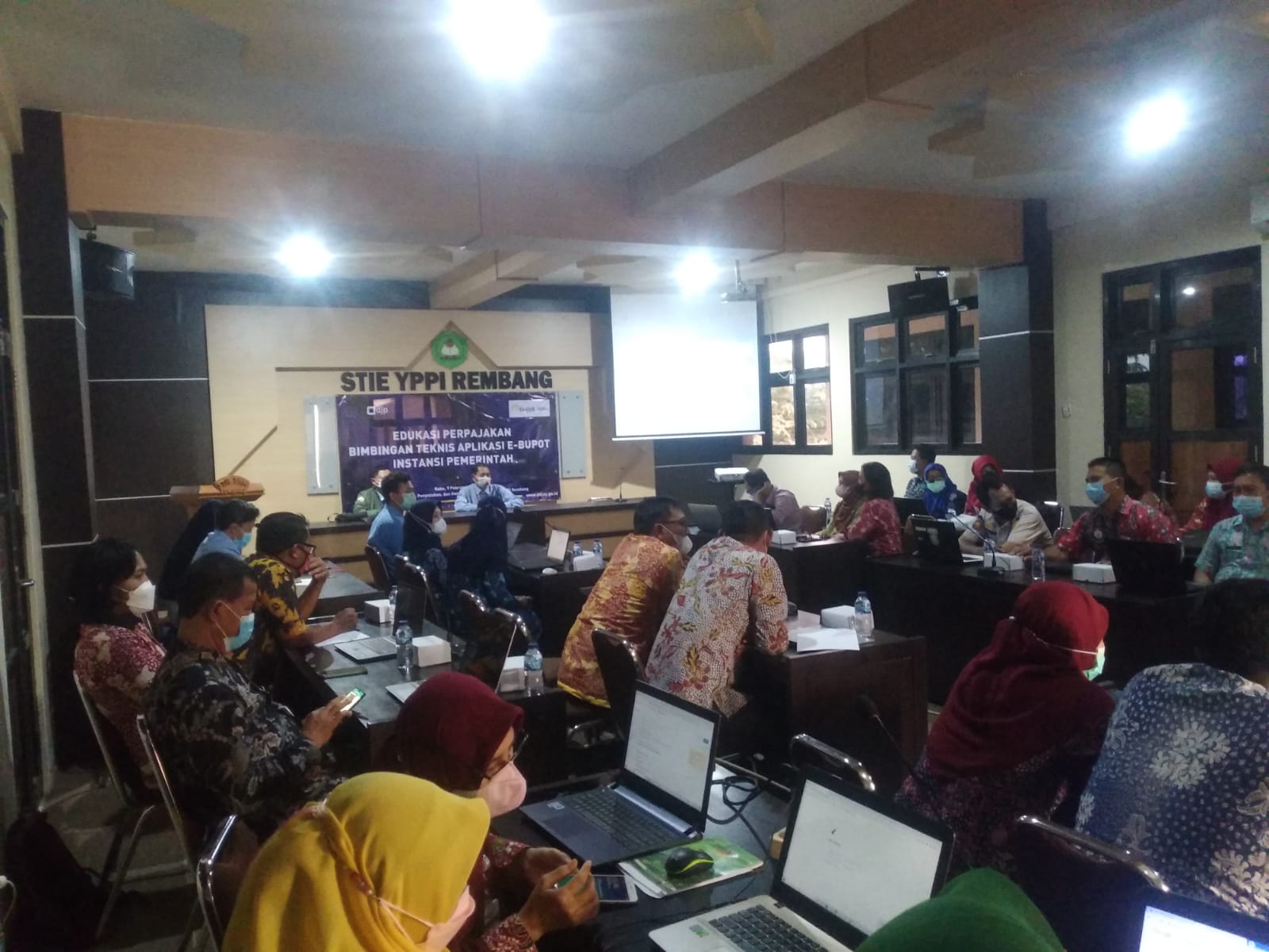 Kantor Pelayanan, Penyuluhan, dan Konsultasi Perpajakan (KP2KP) Rembang bersama Kantor Pelayanan Pajak (KPP) Pratama Pati bekerja sama dengan Sekolah Tinggi Ilmu Ekonomi Yayasan Pengembang Potensi Islami (STIE YPPI) Rembang melaksanakan Edukasi Perpajakan bimbingan teknis Aplikasi e-Bupot Instansi Pemerintah (IP) dalam pembuatan Bukti Pemotongan Pajak Penghasilan (PPh) Pasal 21 secara tatap muka di ruang sidang lantai 2 Kampus STIE YPPI Rembang, Rembang, Jawa Tengah (Rabu, 9/2).