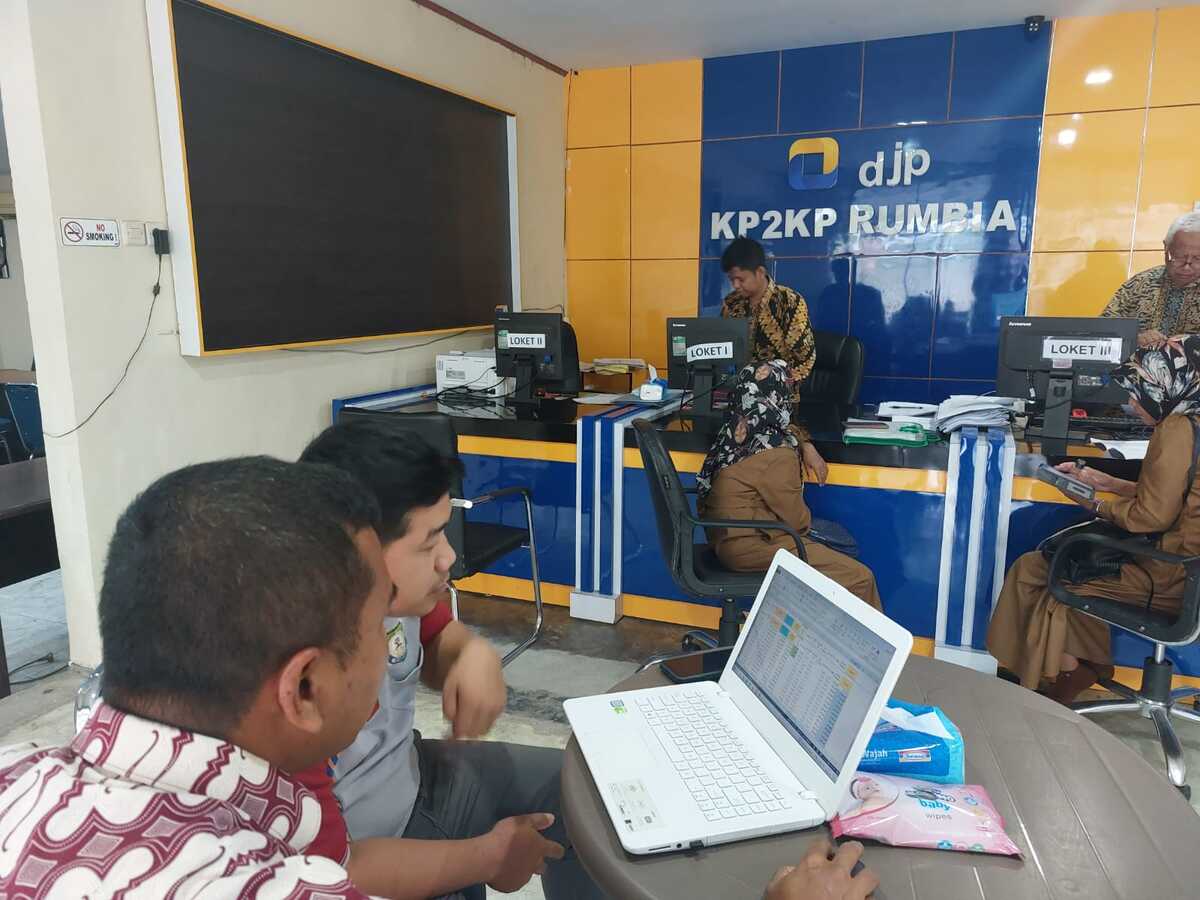 Kantor Pelayanan, Penyuluhan, dan Konsultasi Perpajakan (KP2KP) Rumbia melakukan asistensi Pelaporan Surat Pemberitahuan (SPT) Masa Unifikasi kepada Bendahara Satuan Kerja Perangkat Daerah (SKPD) di Tempat Pelayanan Terpadu (TPT) KP2KP Rumbia (Jumat, 17/2).