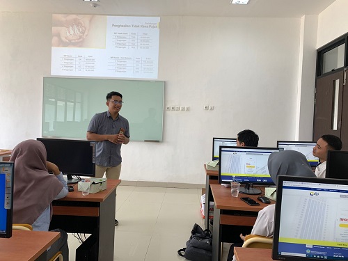 Kantor Pelayanan, Penyuluhan, dan Konsultasi Perpajakan (KP2KP) Sambas melaksanakan pelatihan dan pembekalan pengisian SPT Tahunan kepada 10 Relawan Pajak yang direkrut dari mahasiswa-mahasiswi Politeknik Negeri Sambas (POLTESA) (Kamis, 24/2). Pelaksanaan pelatihan dan pembekalan ini dilakukan di ruangan laboratorium kuliah Program Studi Akuntansi Perusahaan Politeknik Negeri Sambas, Kabupaten Sambas.