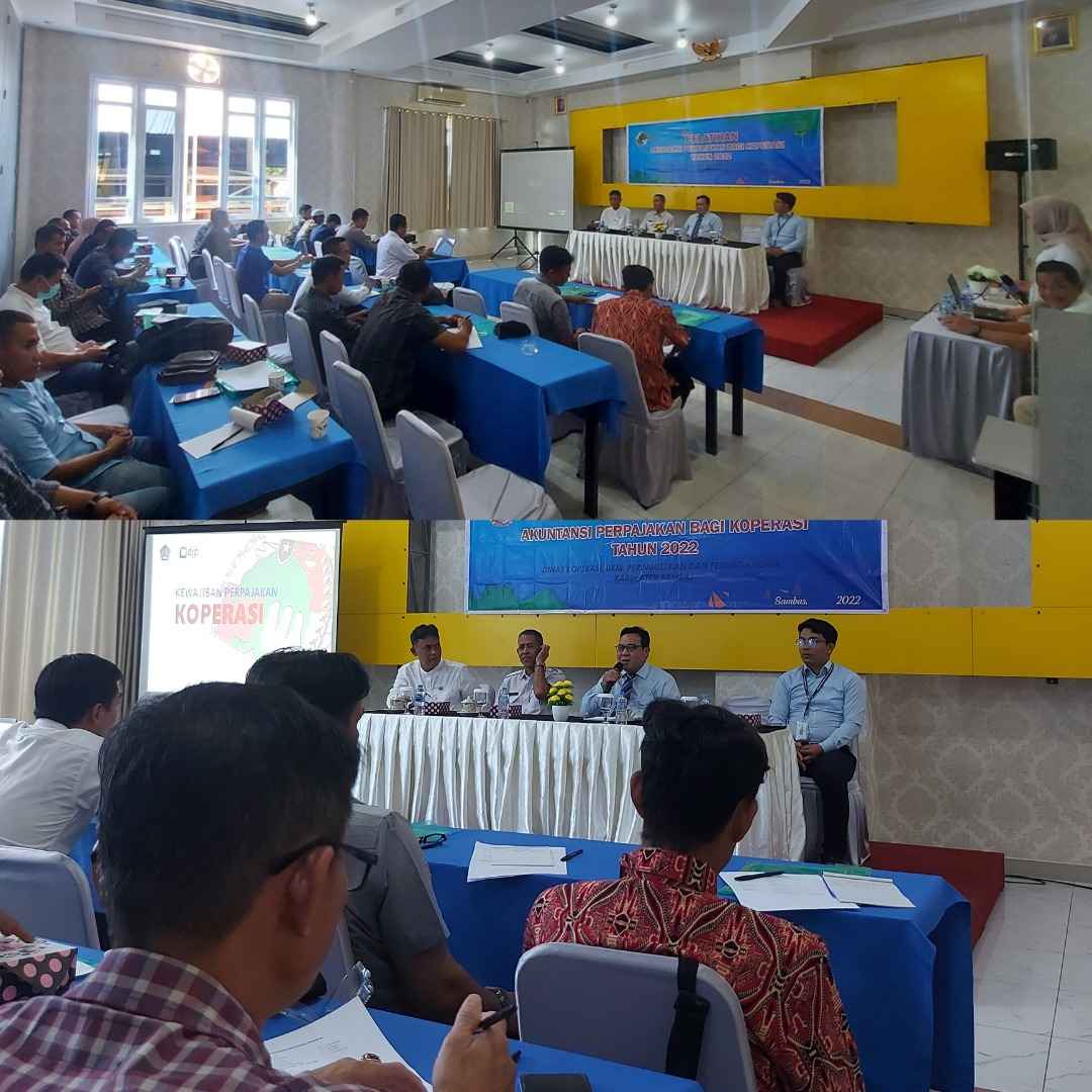 Kantor Pelayanan Penyuluhan dan Konsultasi Perpajakan (KP2KP) Sambas melakukan Sosialisasi kepada Perkumpulan Koperasi di Wilayah Kabupaten Sambas. Kegiatan Sosialisasi ini diselenggarakan oleh Dinas Koperasi, UKM, Perindustrian dan Perdagangan (DISPERINDAGKOP) Kabupaten Sambas yang bekerja sama dengan KP2KP Sambas pada Kegiatan Pelatihan Akuntansi Perpajakan bagi Koperasi Tahun 2022, kegiatan ini bertempat di Ruang Lily Hotel Pantura Sambas (Sambas, 9/11).